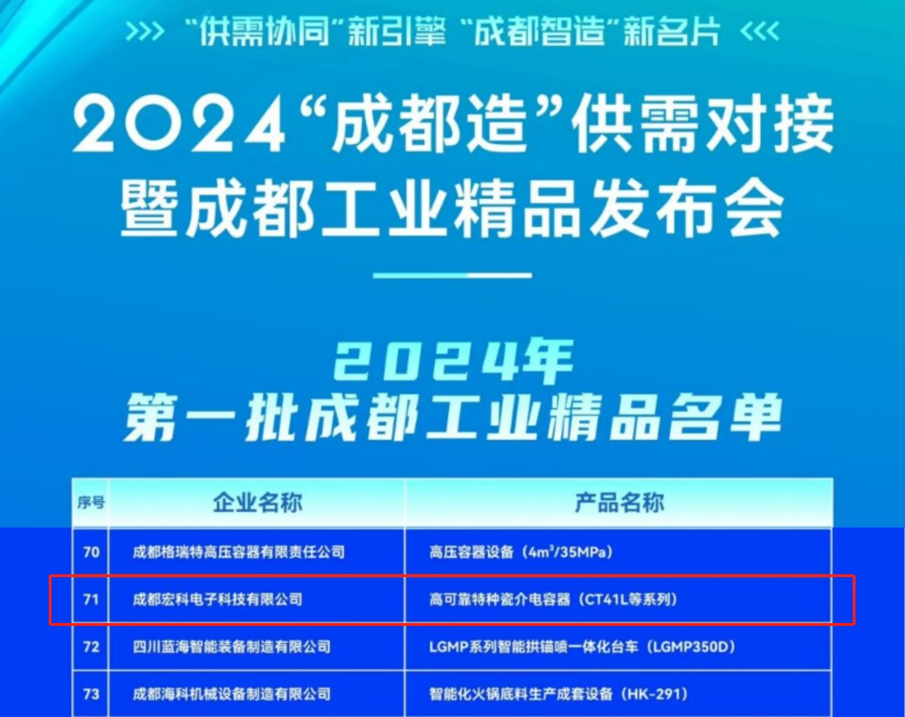 近日,2024“成都造”供需對接暨成都工業(yè)精品發(fā)布會在成都舉行。公司所屬宏明電子子公司宏明宏科憑借其產(chǎn)品的高可靠性、高質(zhì)量性與技術(shù)創(chuàng)新實力,榮獲第一批成都工業(yè)精品稱號。