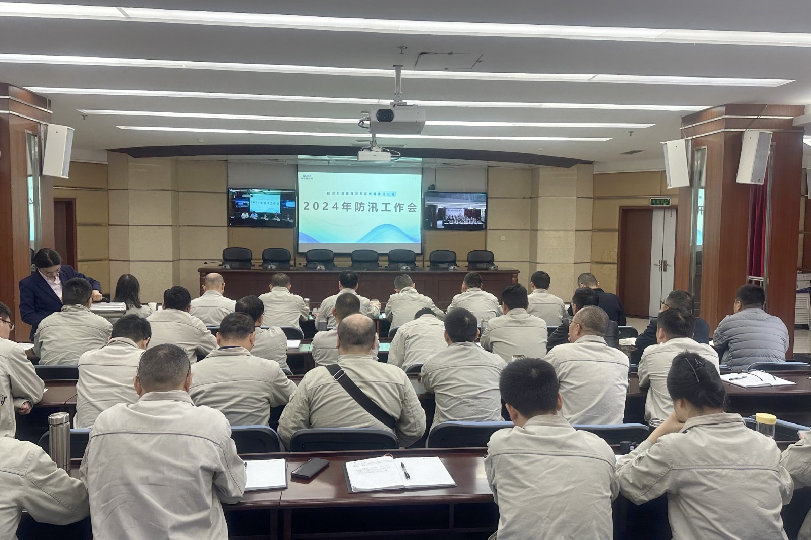4月23日,田灣河公司在成都遠控、電站現(xiàn)場同步召開2024年防汛工作會,田灣河公司黨委副書記、總經(jīng)理、安環(huán)職委會主任楊超龍參加會議并講話,公司領(lǐng)導,各部門、子公司非生產(chǎn)值班全體員工參加會議。會議由副總經(jīng)理、安環(huán)職委會常務(wù)副主任伍超主持。