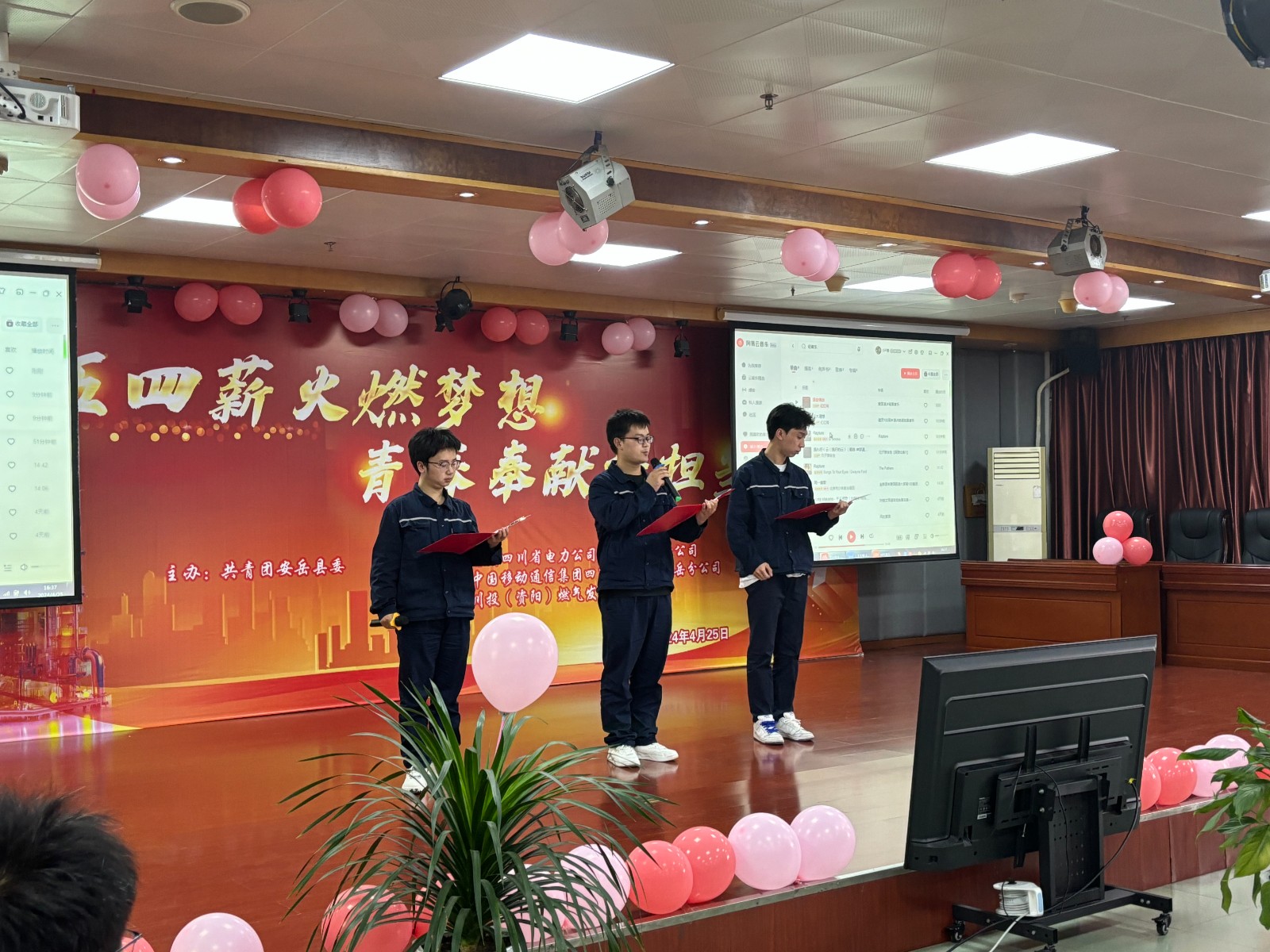 在中國共產主義青年團建團102周年和“五四運動”105周年即將來臨之際,為教育引導廣大團員青年賡續(xù)傳承五四精神,堅定跟黨走、建功新時代,展現團員青年朝氣蓬勃、奮發(fā)進取的精神面貌。4月25日,資陽氣電團支部聯(lián)合安岳縣團委、國網安岳縣供電公司、安岳移動通信公司開展“五四薪火燃夢想 青春奉獻挺擔當”五四青年節(jié)主題團日活動。