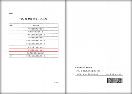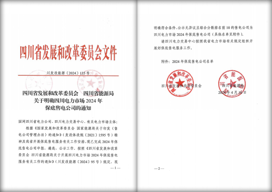 近日,省發(fā)改委、省能源局發(fā)布了《關(guān)于明確2024年保底售電公司的通知》,川投售電再次被評選為四川電力市場2024年保底售電公司。川投售電連續(xù)兩年獲此殊榮,是電力主管部門及各市場主體對川投售電經(jīng)營能力、市場信譽(yù)、員工實(shí)力等各方面的認(rèn)可,更是川投售電全體干部職工腳踏實(shí)地、眾志成城、全力以赴提升公司綜合實(shí)力的具體體現(xiàn)。