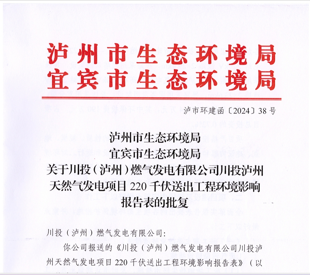 4月30日,《川投瀘州天然氣發(fā)電項(xiàng)目220千伏送出工程環(huán)境影響報(bào)告表》順利通過(guò)瀘州市生態(tài)環(huán)境局和宜賓市生態(tài)環(huán)境局聯(lián)合審批,同意該工程按照環(huán)評(píng)報(bào)告書(shū)中所列環(huán)境保護(hù)污染防治措施及相關(guān)要求進(jìn)行建設(shè)運(yùn)行。至此,川投瀘州天然氣發(fā)電項(xiàng)目220千伏送出工程成功取得環(huán)評(píng)批復(fù)。