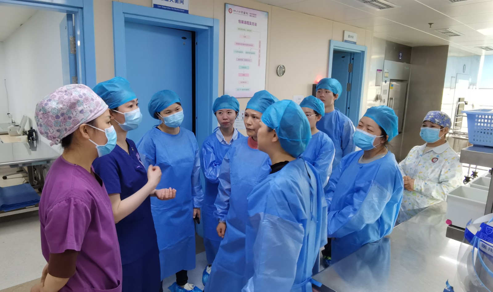 5月6日,青羊區(qū)醫(yī)院感染質量控制中心主任袁華帶領區(qū)上各大醫(yī)療機構17名院感專家蒞臨四川口腔醫(yī)院參觀交流。四川口腔醫(yī)院院長助理、護理部主任蔣薇、消毒供應中心護士長田麗娜、院感科主管曹棟陪同。