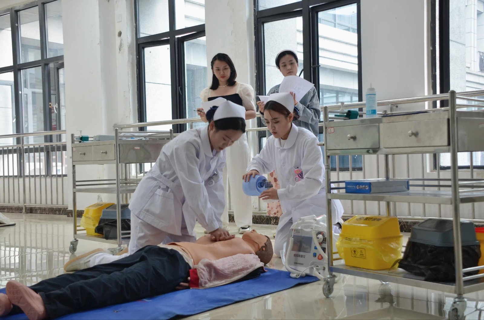 目前,實(shí)訓(xùn)中心已建成包括模擬病房、護(hù)士站、治療室、臨床情景模擬室、外科急救室、搶救室、老年康復(fù)實(shí)訓(xùn)室等34間實(shí)訓(xùn)室。其中,護(hù)理高端模擬實(shí)訓(xùn)室還擁有全世界最先進(jìn)的3G高端模擬人。