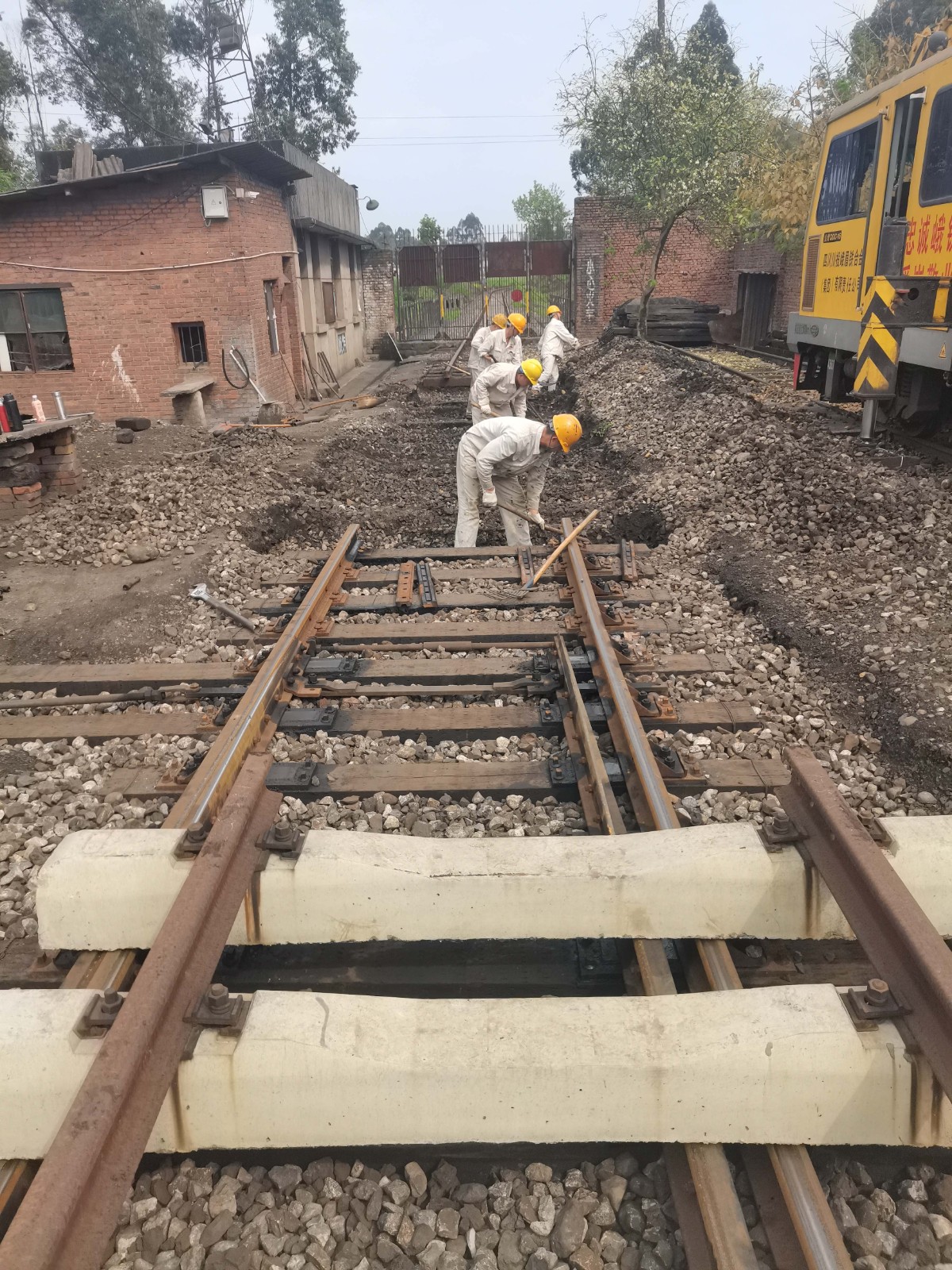 近期,川投峨鐵儲運公司按照公司大安全的總體要求,有序?qū)ΧS區(qū)線路及道岔腐朽、失效的枕木進行了更換,并對已板結(jié)無彈性缺渣的2線道床進行了清篩和回填,目前,枕木更換和道床整治已按期完工。