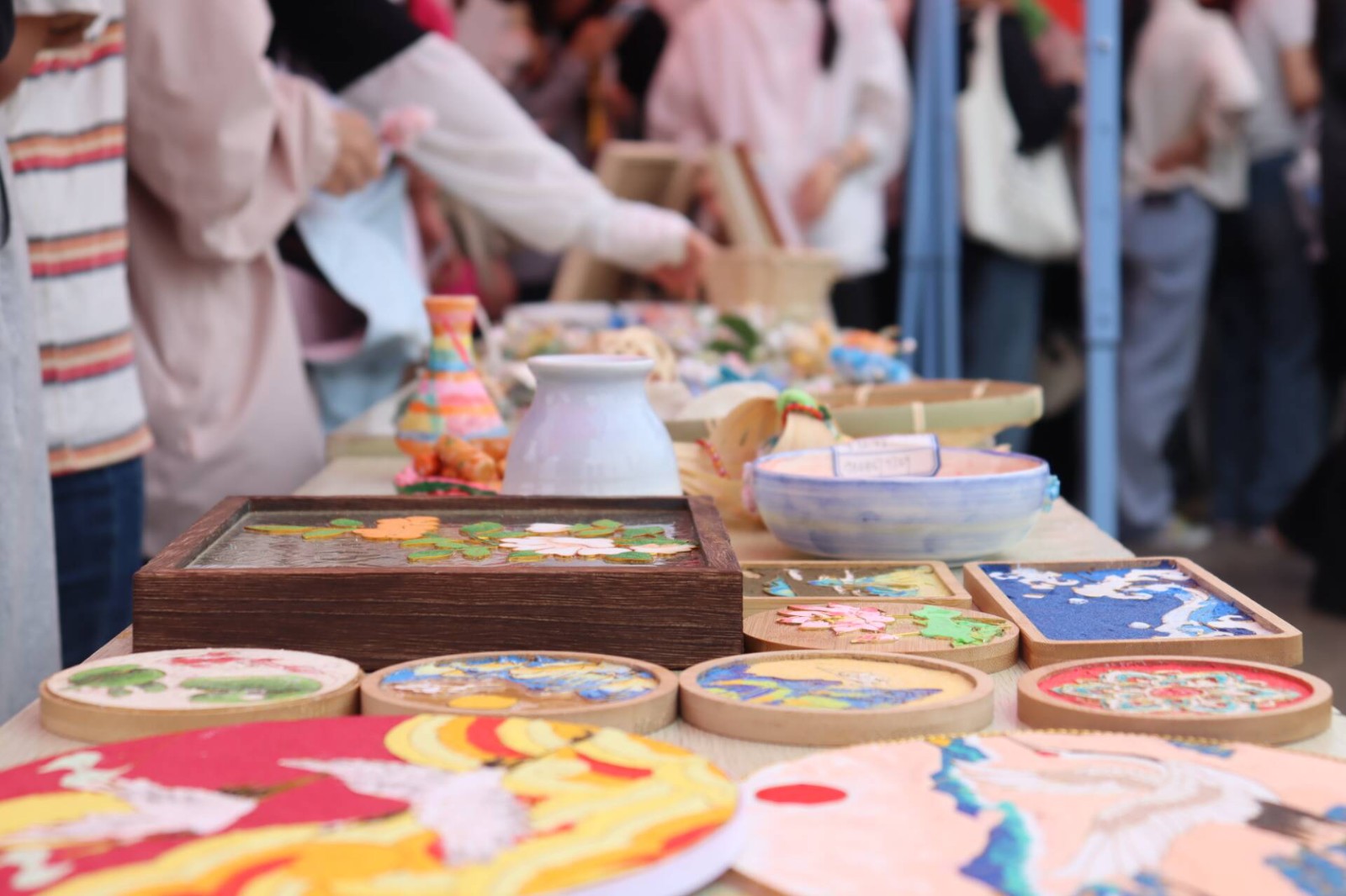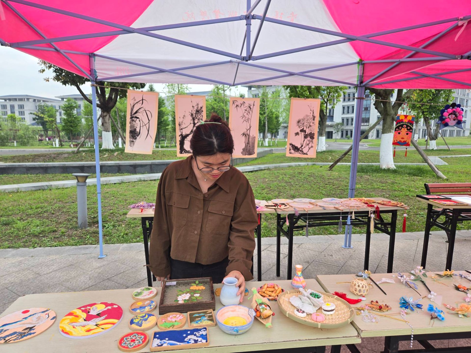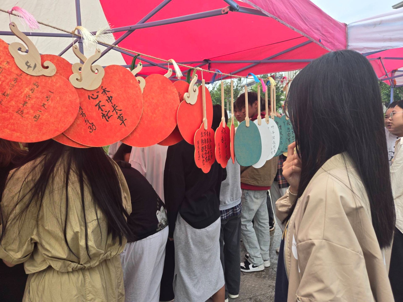 此次活動分為“參觀+體驗”兩個版塊,集中展示2023級學生制作關(guān)于書畫、掐絲琺瑯、團扇、竹編工藝、刺繡、花燈的六大作品,設置點茶、拓印、猜燈謎、詩詞接龍的文化體驗環(huán)節(jié),讓同學們近距離感悟中華優(yōu)秀傳統(tǒng)文化的魅力。