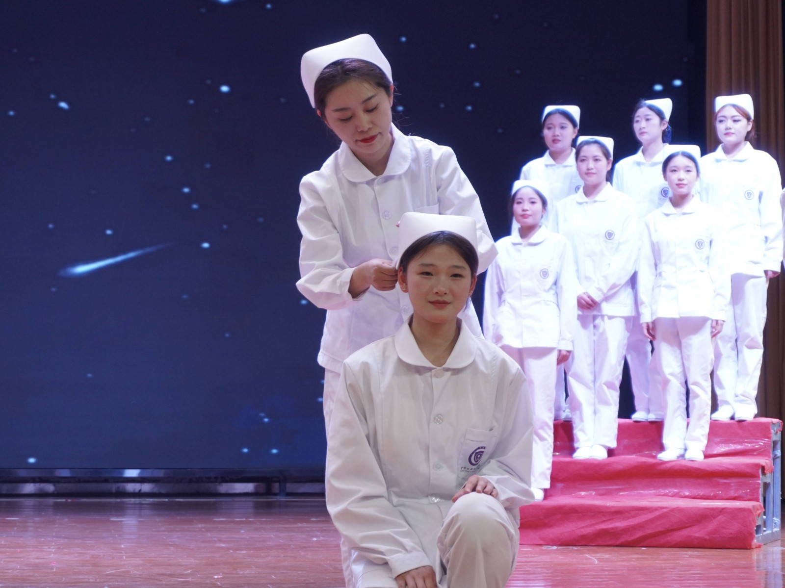 護(hù)理系負(fù)責(zé)人丁曉月及教師代表為2022級(jí)即將踏上實(shí)習(xí)崗位的優(yōu)秀學(xué)生代表冠冕禮帽,并帶領(lǐng)全體護(hù)理人員進(jìn)行宣誓,激勵(lì)現(xiàn)場(chǎng)護(hù)理學(xué)子向優(yōu)秀護(hù)理前輩學(xué)習(xí),將畢生的精力和心血投入到護(hù)佑人民健康的神圣事業(yè)當(dāng)中去。