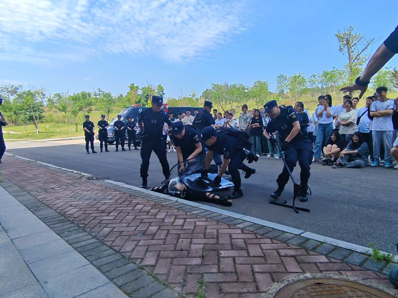 學院高度重視此次演練,堅持“真實、協(xié)調(diào)、統(tǒng)一”的原則,貫徹“安全第一、預防為主,綜合治理”的方針,提前部署,調(diào)度警力,制定嚴密的演練方案。反恐防暴演練過程包含警用裝備的正確操作與使用講解、反恐防暴隊形的教學、暴力恐怖事件演練等環(huán)節(jié)。