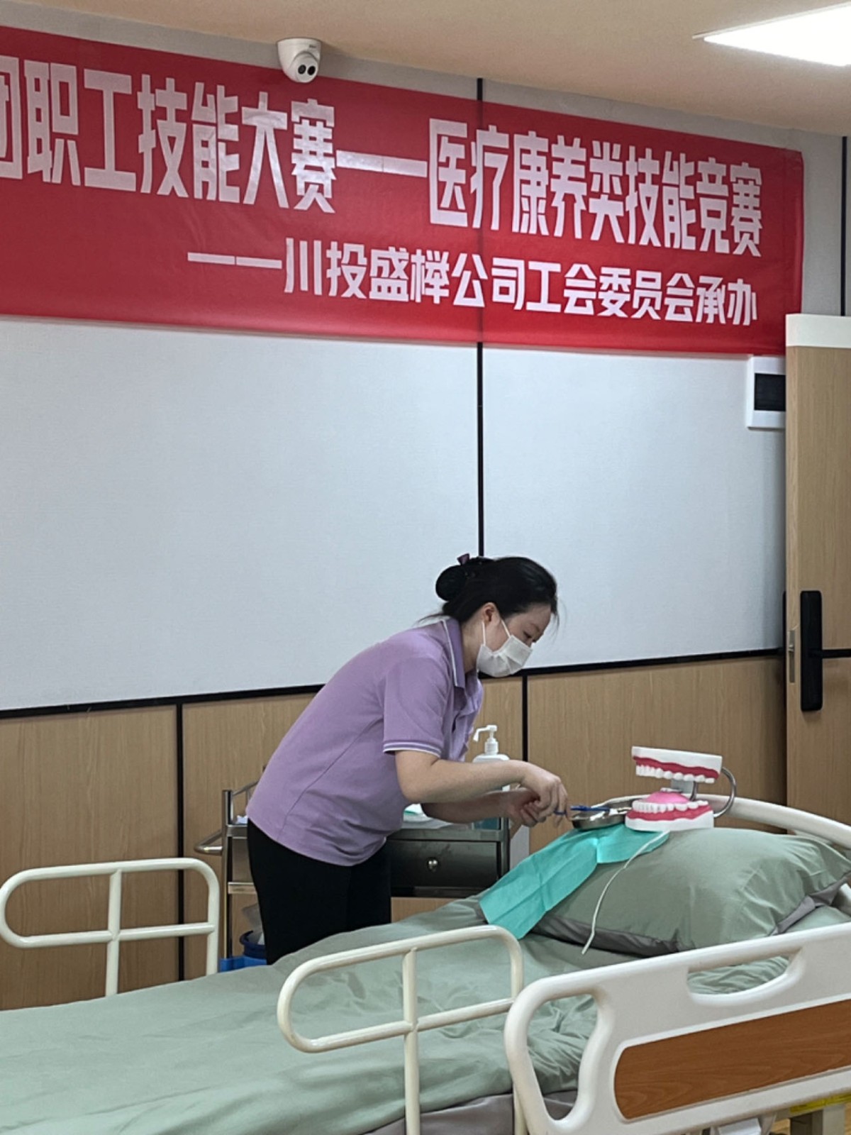 此次技能大賽醫(yī)療康養(yǎng)類項目包括口腔護(hù)理操作、海姆立克急救法等2項比賽項目及多種急救技術(shù)的科普展示,經(jīng)過前期基層工會進(jìn)行預(yù)賽選拔,比賽現(xiàn)場,來自川投盛櫸公司3所養(yǎng)老機構(gòu)的的6名選手以及來自川投西昌醫(yī)院急診科、護(hù)理部的3名選手分別進(jìn)行了兩個比賽項目的最終角逐。