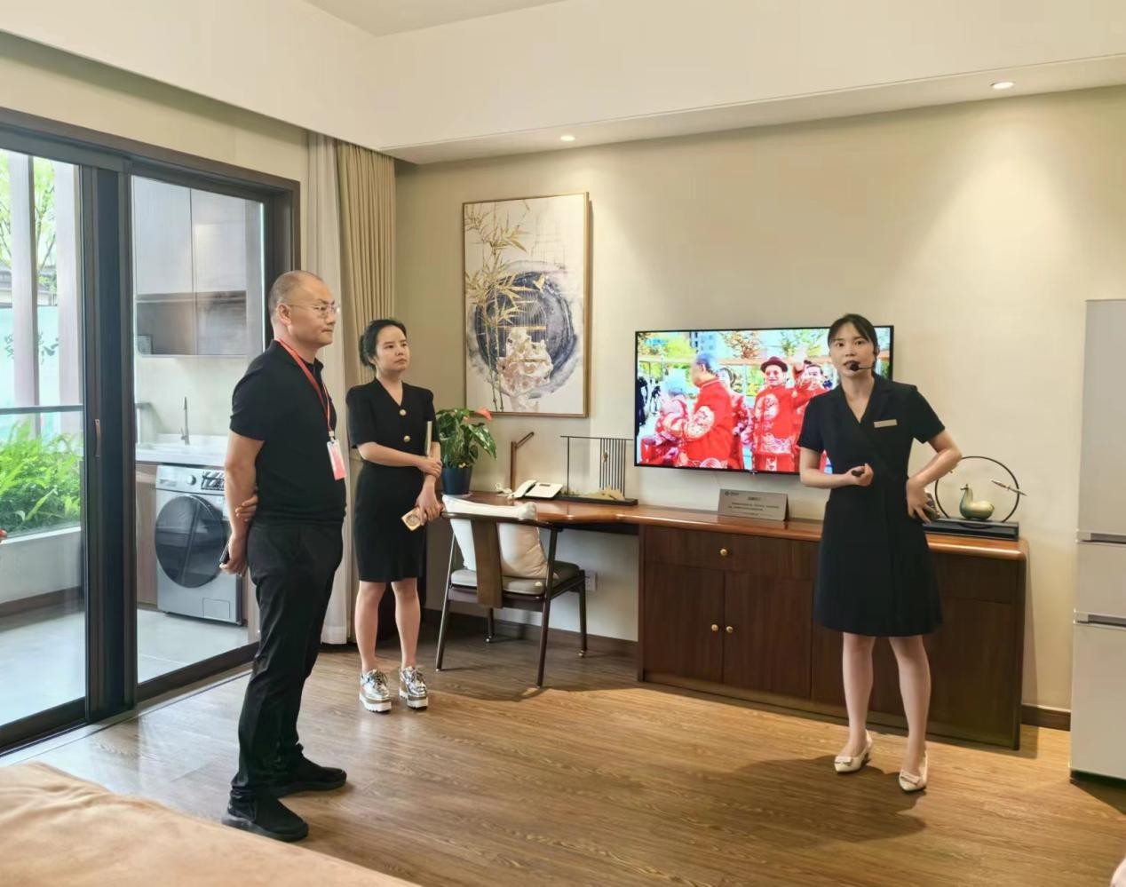 調(diào)研組一行現(xiàn)場參觀走訪了項目主要區(qū)域,并圍繞項目功能區(qū)域的作用發(fā)揮成效、項目設(shè)施環(huán)境的舒適程度與適老化設(shè)計方案展開了深入的討論交流。座談會上,太平產(chǎn)業(yè)成都分公司芙蓉人家總經(jīng)理路文剛對太平小鎮(zhèn)品牌、發(fā)展歷程、項目情況及經(jīng)營理念進行介紹,他提出,希望能與川投大健康產(chǎn)業(yè)集團在康養(yǎng)醫(yī)療領(lǐng)域和新項目投拓方面進行業(yè)務(wù)洽談與合作對接。龔堅對太平小鎮(zhèn)項目布局及運營情況表示充分認可,并指出,雙方可以通過探索委托運營、股權(quán)合作等方式開展合作,實現(xiàn)雙向賦能、資源互補,共同推動健康產(chǎn)業(yè)高質(zhì)量發(fā)展。