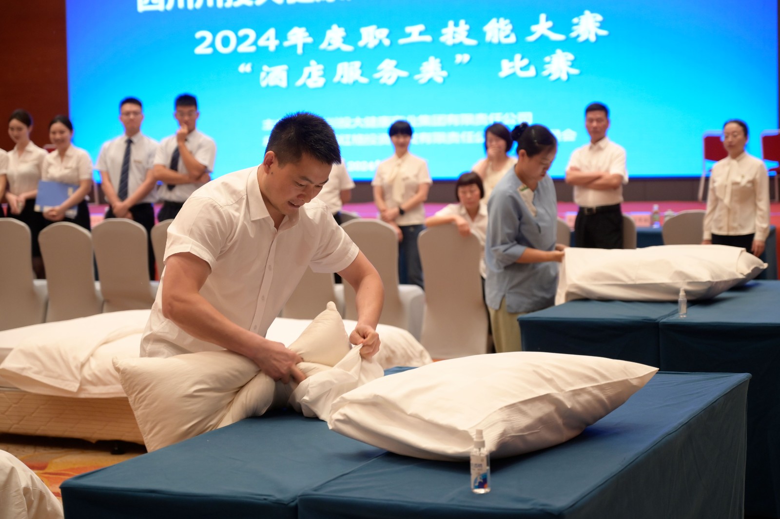 為深入學習貫徹習近平新時代中國特色社會主義思想,全面落實習近平總書記對技能人才工作的重要指示精神,由川投大健康產業(yè)集團工會主辦、紅投公司工會承辦的以“強本領、提質效、促發(fā)展”為主題的2024年職工技能大賽“酒店服務類”比賽,于6月4日在紅投公司紅格溫泉假日酒店拉開帷幕。川投國網(wǎng)公司黨委副書記、紀委書記余華偉,川投大健康產業(yè)集團黨委組織部部長、工會副主席、女職工委員會主任陳曉紅,紅投公司黨支部書記、總經(jīng)理劉定松出席比賽。