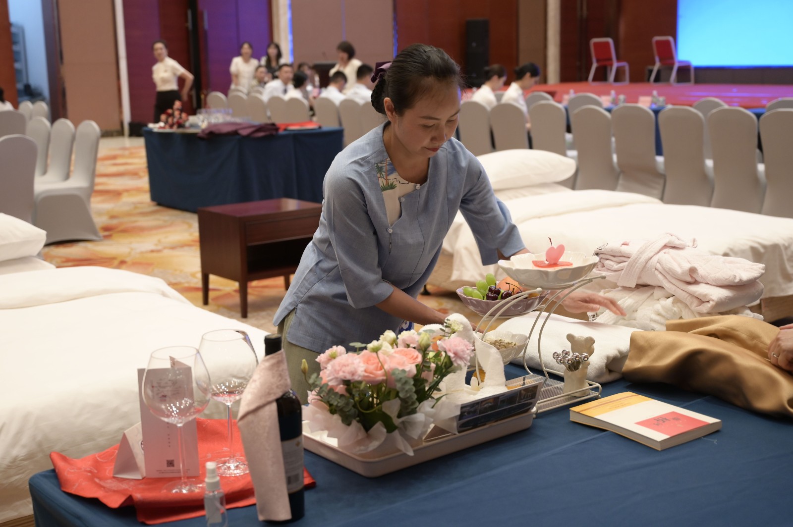 大賽設置中式鋪床、中餐擺臺、西餐擺臺、會務擺臺4個項目的個人賽和酒店服務禮儀團體賽,共計5個比賽項目。來自川投國網(wǎng)工會、紅投公司工會的30名職工參加比賽。經(jīng)過近8個小時的技能角逐,個人賽項目4個項目中的12名參賽選手斬獲獎項,比賽全程緊張有序,參賽選手們在比賽中展示出的嫻熟技藝和專業(yè)操作贏得了現(xiàn)場觀眾的熱烈掌聲。