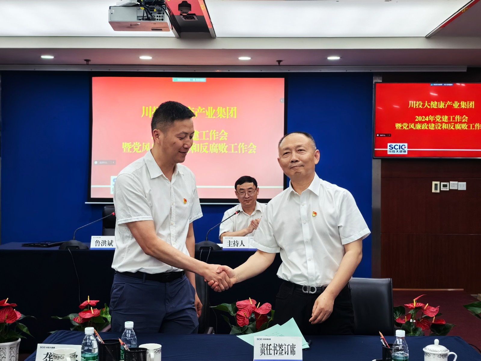 會(huì)議學(xué)習(xí)了二十屆中央紀(jì)委三次全會(huì)、 十二屆四川省紀(jì)委三次全會(huì)精神和全國(guó)全省組織部長(zhǎng)、宣傳部長(zhǎng)會(huì)議精神。姜波通報(bào)了當(dāng)前黨建工作開展情況,部署了2024年度黨風(fēng)廉政建設(shè)和反腐敗工作。魯洪斌代表川投大健康產(chǎn)業(yè)集團(tuán)領(lǐng)導(dǎo)班子作了2024年度個(gè)人廉潔公開承諾,并分別與領(lǐng)導(dǎo)班子、部門、所屬公司簽訂了廉政建設(shè)責(zé)任書。