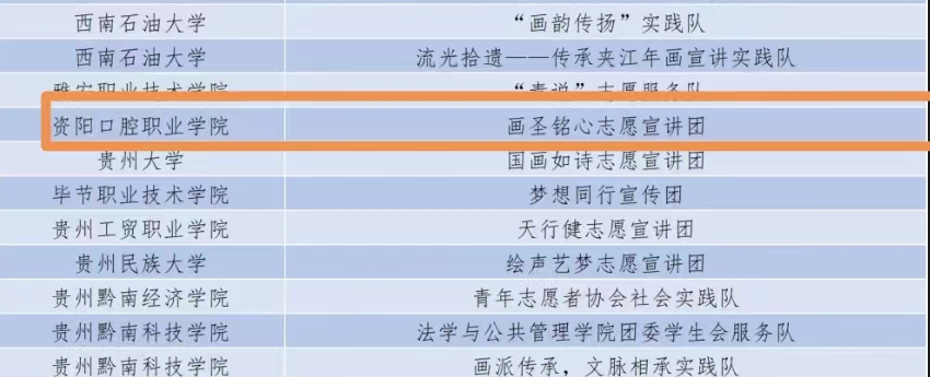 近日,團(tuán)中央“中國歷代繪畫大系”全國大學(xué)生志愿宣講團(tuán)入選名單公布,資陽口腔職業(yè)學(xué)院由醫(yī)學(xué)系輔導(dǎo)員霍喜老師指導(dǎo)的“畫圣銘心志愿宣講團(tuán)”成功入選。