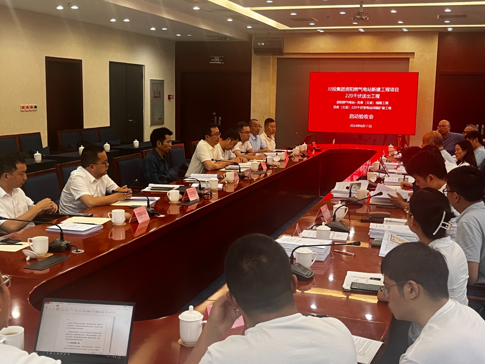 6月11日,資陽(yáng)燃?xì)怆娬?20千伏送出工程靈泉(文武)輸變電工程啟動(dòng)驗(yàn)收會(huì)在成都召開(kāi)。資陽(yáng)氣電副總經(jīng)理嚴(yán)天元參會(huì)。