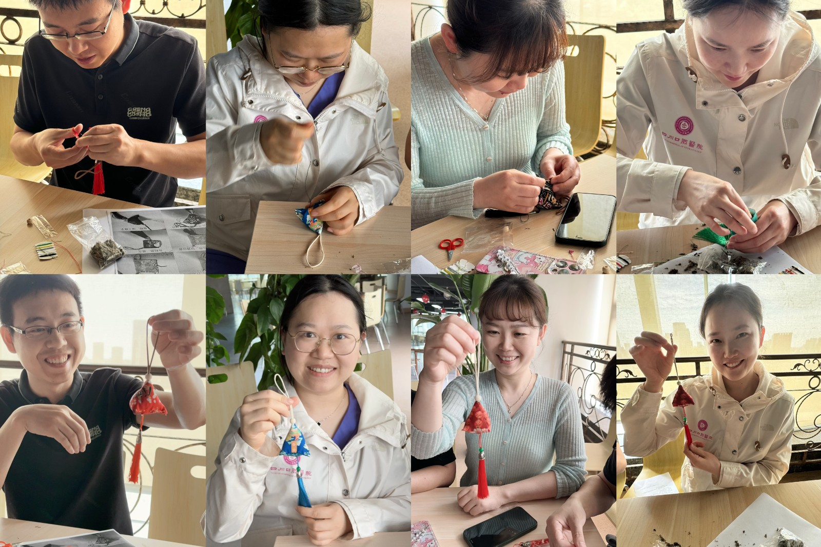 誦讀活動后,組織黨員、團員手工制作香囊。經(jīng)過穿針引線、縫邊、裝艾草、封口、定型等工序后,完成了香囊制作。大家把制作好的精美香囊展示出來,一起交流欣賞,傳達著幸福安康的美好愿望。