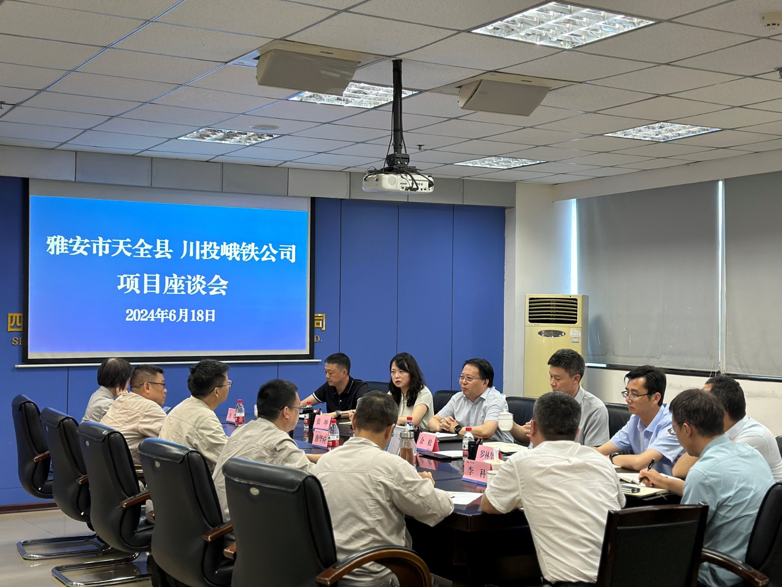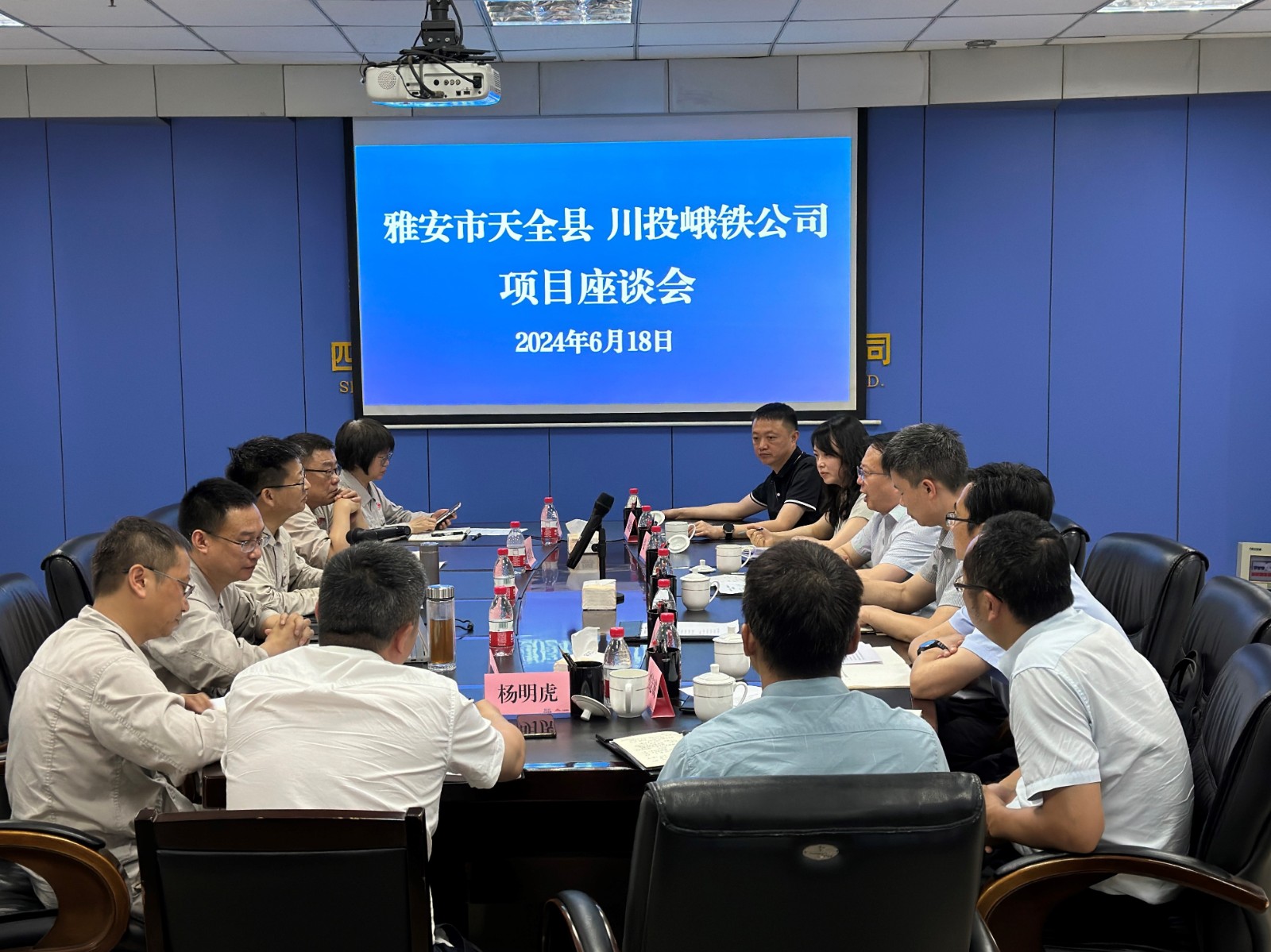 6月18日,天全縣縣委書記余力,縣委常委、縣人民政府常務(wù)副縣長(zhǎng)余松,雅安市發(fā)改委環(huán)資科科長(zhǎng)張坤等一行到訪川投峨鐵公司,川投峨鐵公司黨委書記、董事長(zhǎng)唐華應(yīng),黨委副書記、總經(jīng)理陳新龍與代表團(tuán)一行召開了項(xiàng)目座談會(huì)。