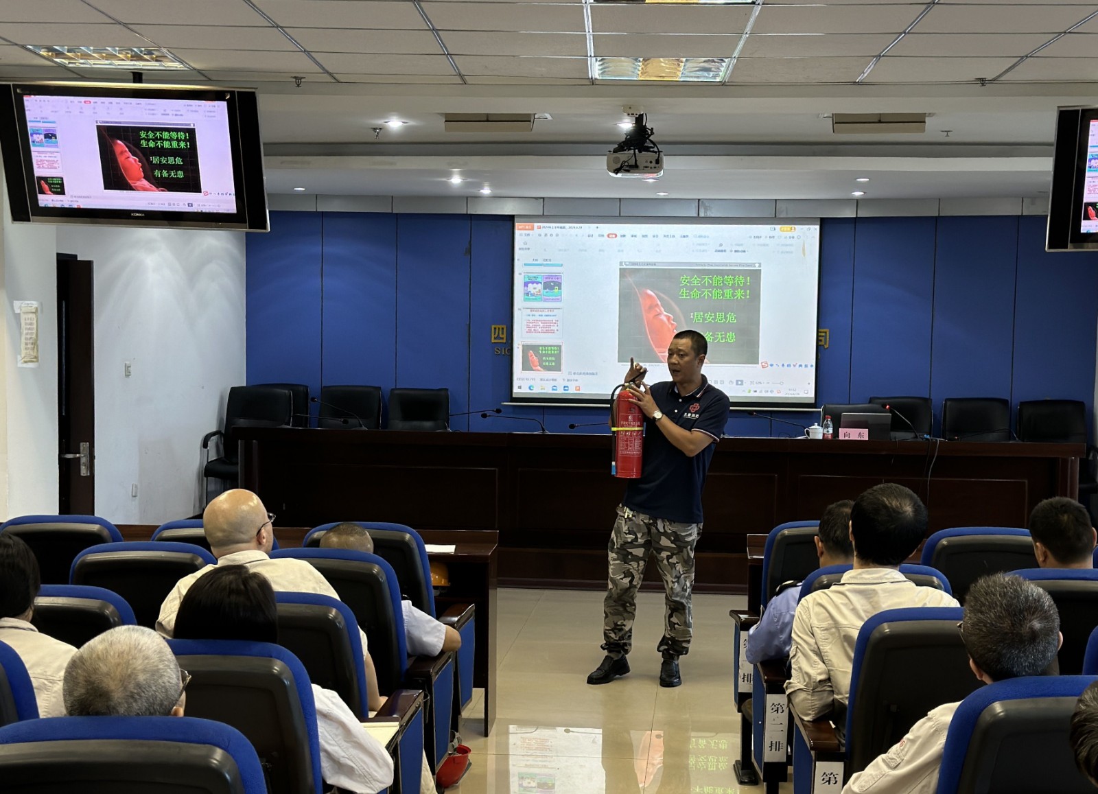 為了切實提高公司消防安全管理水平,全面落實關(guān)于消防安全“四個能力”建設(shè)的要求,6月26日,川投峨鐵公司邀請四川久盾消防工程有限公司技術(shù)負責人、維保部經(jīng)理向東到公司開展消防安全專題培訓和演練指導。公司黨委副書記、工會主席陳瑾主持培訓會并講話。