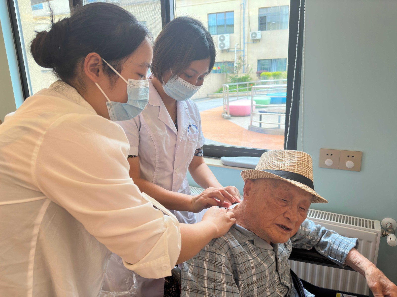 簽約儀式結束后,瀘州市人民醫(yī)院老年病科護士長帶領護士團隊為頤康養(yǎng)護院在住長者提供了中醫(yī)護理體驗服務。