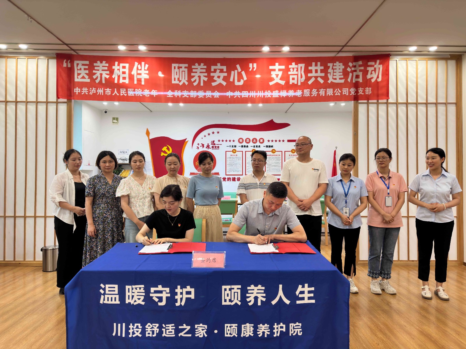 6月25日,川投盛櫸公司黨支部與瀘州市人民醫(yī)院老年·全科黨支部在川投舒適之家·頤康養(yǎng)護院(瀘州)開展了支部共建簽約儀式。