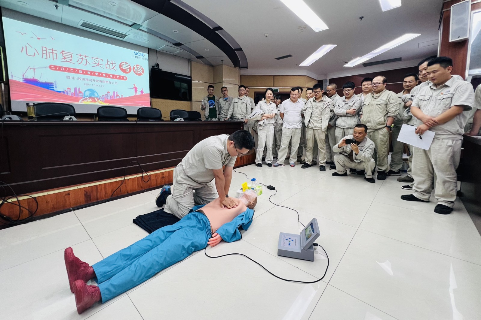 為持續(xù)深入開展2024年“安全生產(chǎn)月”活動(dòng),檢驗(yàn)全員應(yīng)急能力提升實(shí)操培訓(xùn)效果,田灣河公司于6月20日、22日、28日,在成都遠(yuǎn)控、電站現(xiàn)場兩地開展心肺復(fù)蘇(CPR)技能實(shí)戰(zhàn)考核。