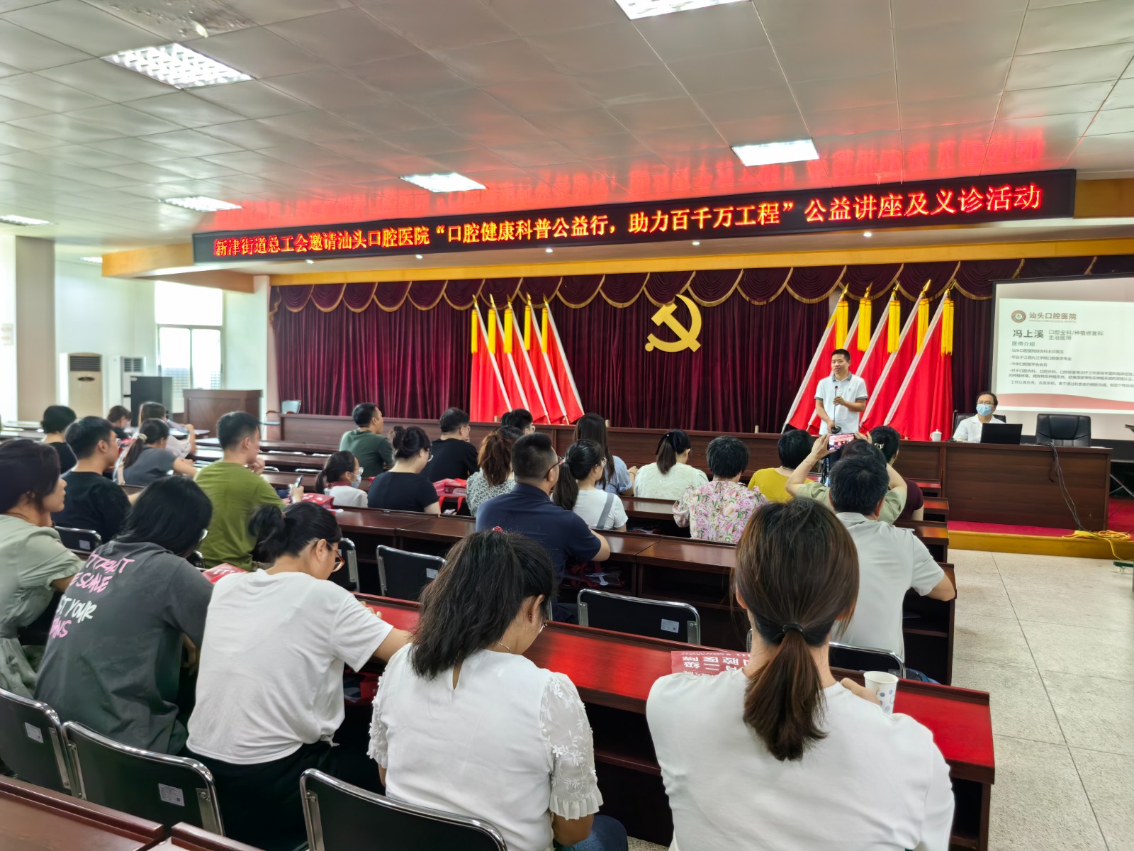 為增強全民健康意識,普及口腔健康教育,提升群眾口腔健康幸福感。近日,汕頭口腔醫(yī)院走進新津街道總工會開展“口腔健康科普公益行 助力百千萬工程”活動,為職工們送去了口腔健康公益科普課堂和口腔健康義診。