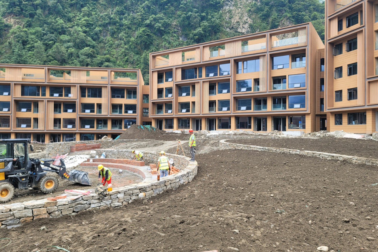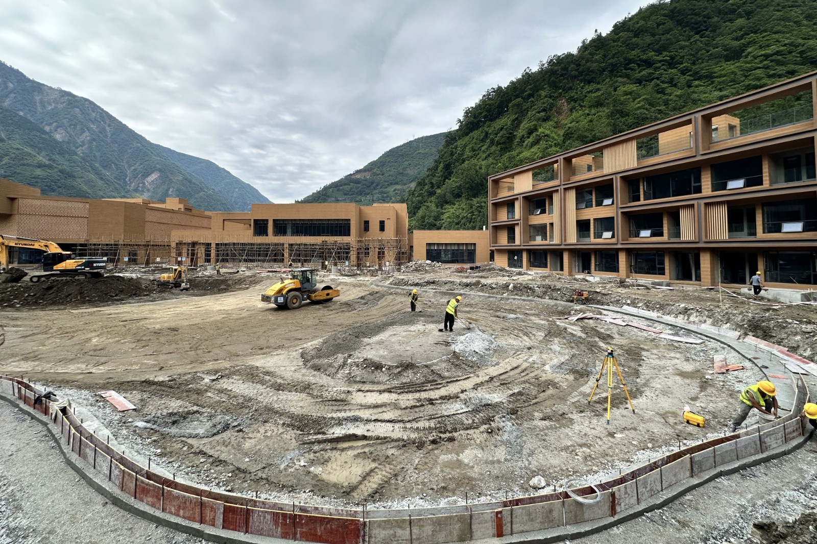 草科溫泉特色小鎮(zhèn)一期項目計劃總投資3.45億元,目前已實現(xiàn)投資約2.1億元,共投入建設(shè)人力1000余人,各類機(jī)械150余臺。截至6月30日,項目一期土建(含一次機(jī)電)工程已完成竣工預(yù)驗收,災(zāi)后重建排水溝項目、中庭臺地花園喬木栽植已全部完成,總平景觀施工初步形成整體輪廓,室內(nèi)裝修基層施工、管網(wǎng)安裝等即將告捷。