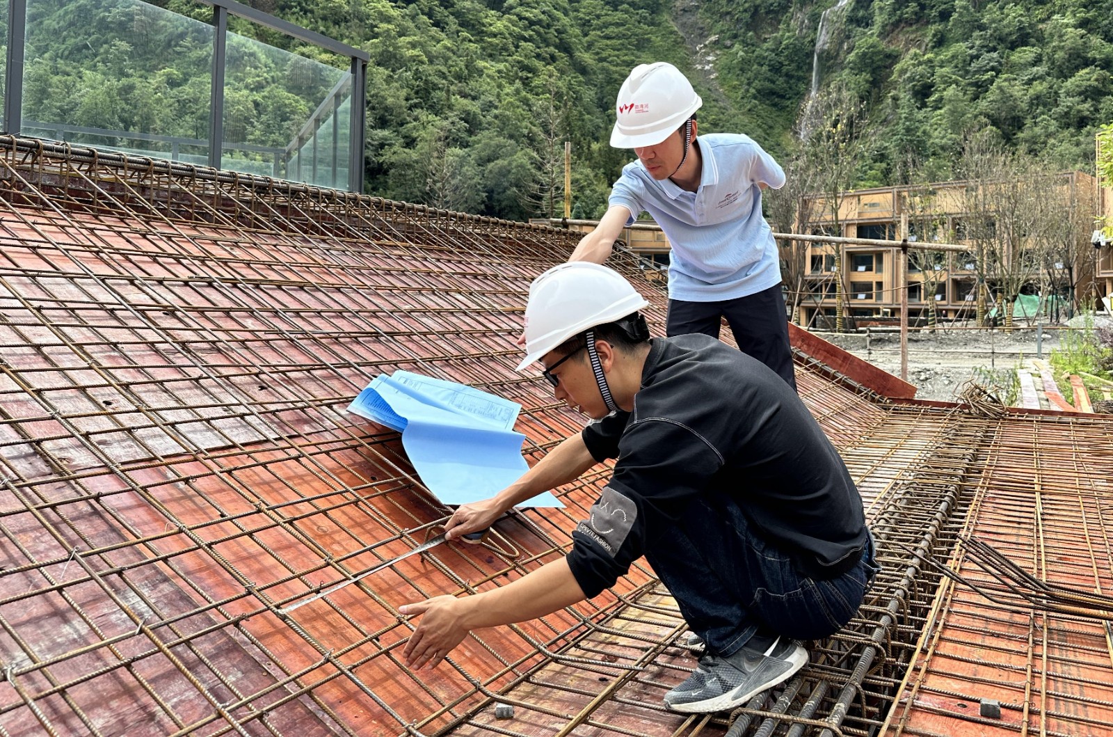 加快建設(shè)進(jìn)度的同時,旅游公司堅決樹牢安全發(fā)展理念,始終將施工安全與質(zhì)量擺在首要位置。一是堅持不懈抓實現(xiàn)場安全管理。嚴(yán)格執(zhí)行安全管理制度,每日召開作業(yè)人員安全晨會、開展現(xiàn)場安全巡查,每周四進(jìn)行集中安全周檢查,每月開展月度安全大檢查,安排專人對現(xiàn)場施工安全進(jìn)行監(jiān)督管理。同時加強(qiáng)應(yīng)急管理,按照上級、屬地防汛減災(zāi)部署要求,加強(qiáng)地企聯(lián)動,落實“三避讓、三個緊急撤離”;針對主汛期強(qiáng)降雨及高溫酷暑天氣狀況因勢施策,靈活調(diào)整施工作業(yè)時間,室外作業(yè)避開雷雨、強(qiáng)降雨及正午高溫時段,保護(hù)施工人員人身安全。二是一絲不茍把牢工程質(zhì)量關(guān)口。落實施工質(zhì)量全過程監(jiān)督,現(xiàn)場施工管理人員每日對所用建筑材料質(zhì)量進(jìn)行抽查,對施工過程規(guī)范性進(jìn)行監(jiān)督檢查,確保施工質(zhì)量不出問題。