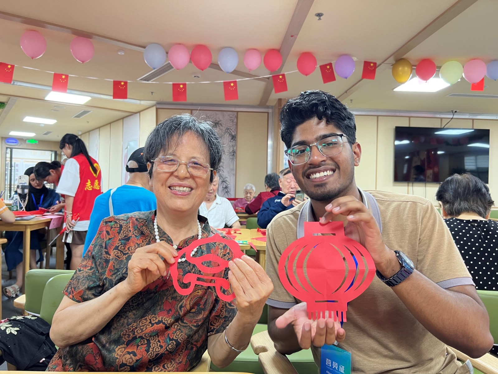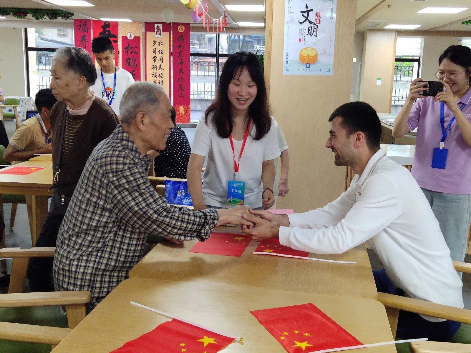 活動中,留學(xué)生們紛紛上臺,用所學(xué)中文作了自我介紹,并與長者們結(jié)對進行破冰游戲、非遺剪紙活動;長者們也以滿腔的熱血,用演唱歌曲等方式對留學(xué)生的到來表示歡迎。語言不同,幸福共通;國籍有別,友誼長存。