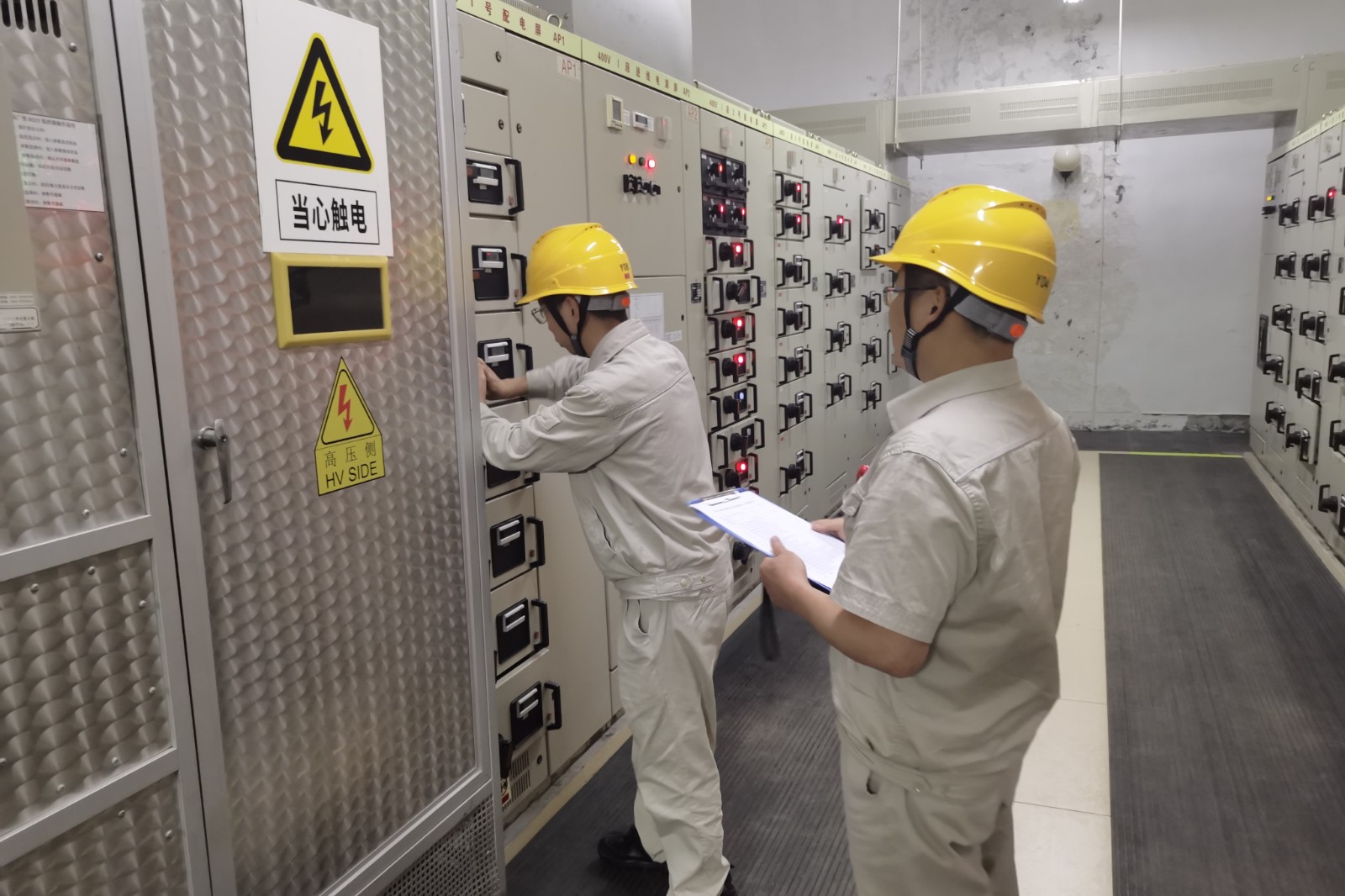 應(yīng)急備用電源帶廠用負(fù)荷試驗(yàn)需要在站內(nèi)廠用電全停情況下進(jìn)行,為確保站內(nèi)重要設(shè)備如直流、通信、保護(hù)、油壓系統(tǒng)等的供電安全,同時(shí)保障站上值班人員生活和搶修施工用電,公司高度重視,提前籌劃,結(jié)合現(xiàn)場廠用設(shè)備接線情況,組織討論并編制了《田灣河流域三站柴油發(fā)電機(jī)組帶廠用負(fù)荷試驗(yàn)方案》。啟動(dòng)試驗(yàn)前,發(fā)電部組織人員熟悉試驗(yàn)方案和注意事項(xiàng),明確風(fēng)險(xiǎn)防控措施,并做好人員分工安排和各項(xiàng)準(zhǔn)備工作。試驗(yàn)開始后,在公司統(tǒng)一指揮下,運(yùn)行與檢修各專業(yè)人員密切配合,在各重點(diǎn)部位安排專人監(jiān)視、操作,按方案流程完成了廠用母線負(fù)荷轉(zhuǎn)移、廠用母線停電、柴油發(fā)電機(jī)啟動(dòng)、核對(duì)相序、廠用母線充電、負(fù)荷逐級(jí)送電、啟動(dòng)設(shè)備等各項(xiàng)試驗(yàn)步驟。試驗(yàn)過程中,柴油發(fā)電機(jī)承受了特定負(fù)荷的考驗(yàn),包括中低壓氣機(jī)、調(diào)速器油泵、球閥系統(tǒng)油泵等重要設(shè)備供電需求。同時(shí)發(fā)電部運(yùn)行人員對(duì)發(fā)電機(jī)的運(yùn)行參數(shù)進(jìn)行了密切監(jiān)測(cè),包括電壓、電流、頻率、油溫、油壓等,為柴油發(fā)電機(jī)帶廠用負(fù)荷試驗(yàn)順利完成保駕護(hù)航。