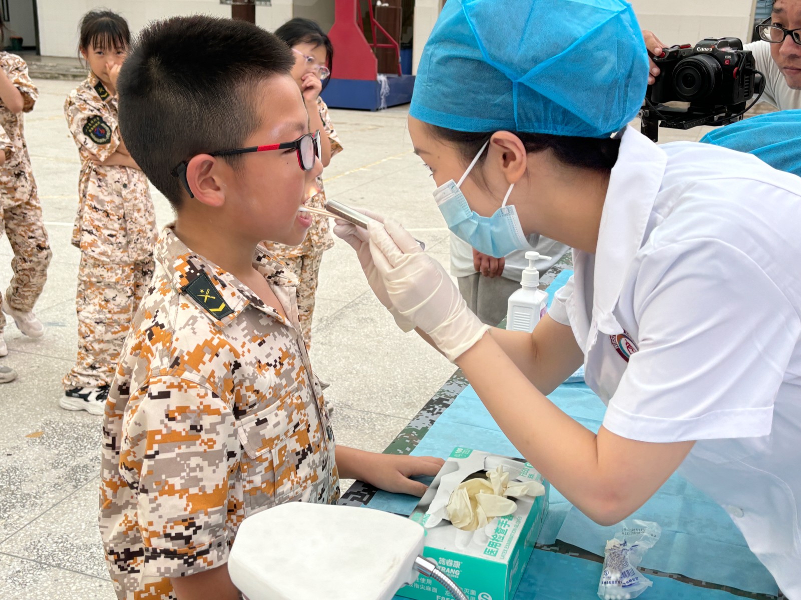 7月18日,重慶華西牙科醫(yī)院愛牙公益行走進(jìn)“我是特種兵”夏令營(yíng),為營(yíng)區(qū)內(nèi)的120名孩子免費(fèi)檢查口腔健康情況。
