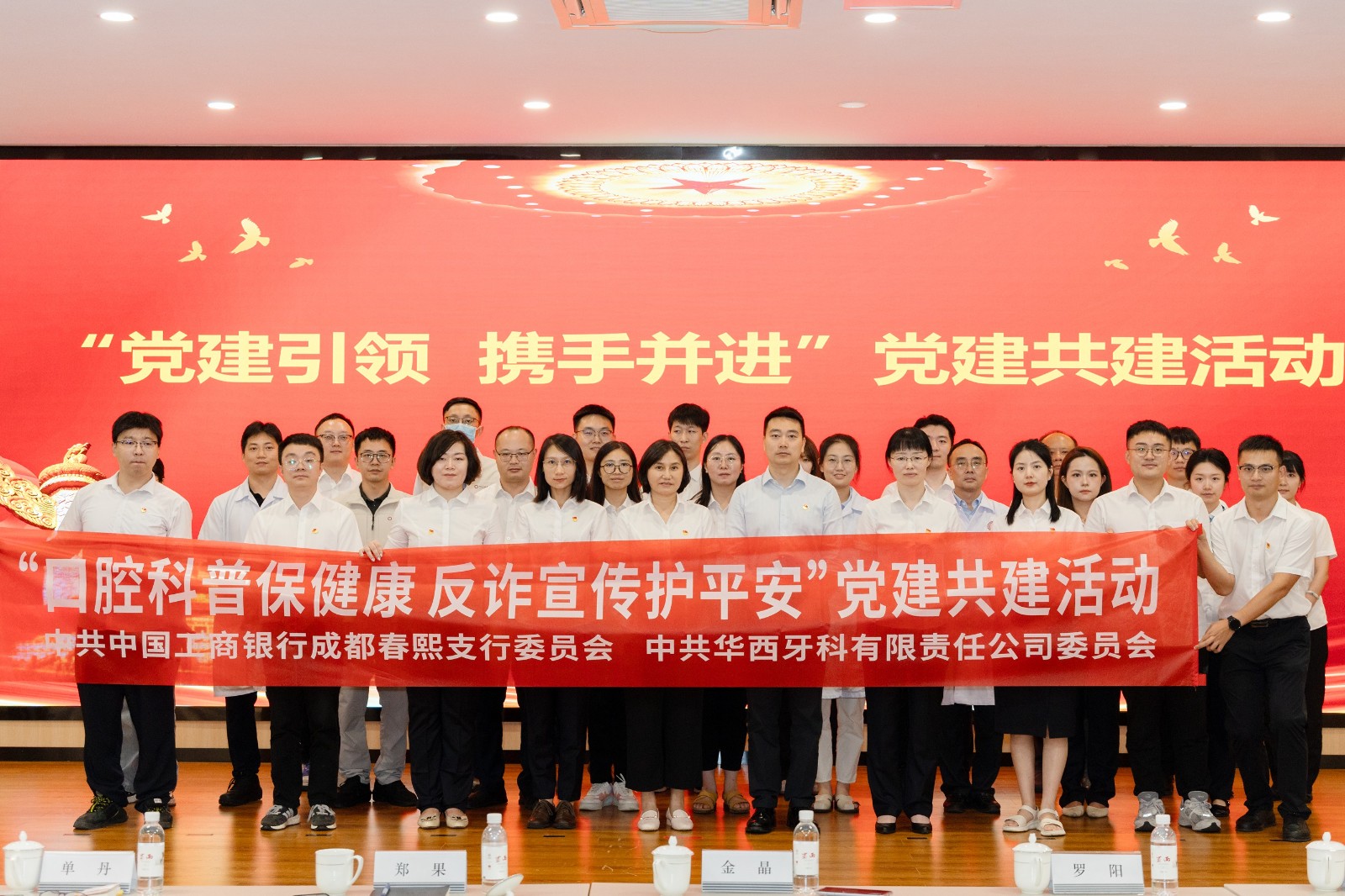7月24日下午,華西牙科赴中國工商銀行成都春熙支行開展“口腔科普保健康 反詐宣傳護(hù)平安”黨建共建活動(dòng)。華西牙科黨委副書記、工會(huì)主席金晶,黨委委員、財(cái)務(wù)總監(jiān)單丹參加活動(dòng)。