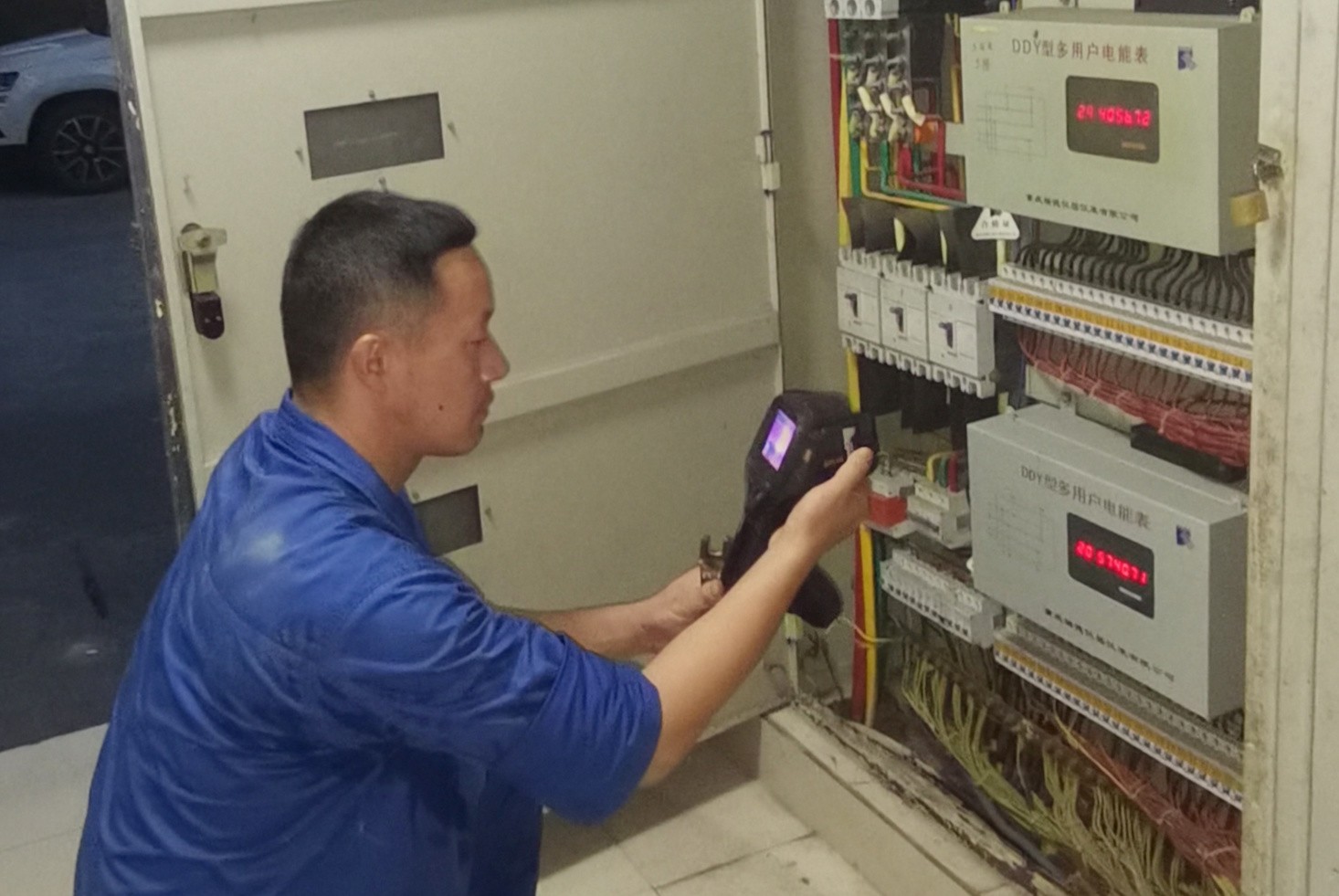 為有效排查配電設備發(fā)熱隱患,檢查人員利用晚間用電高峰時段,對生活區(qū)內(nèi)1號、2號箱變及各樓棟入戶配電箱進行了全面紅外測溫檢查。發(fā)現(xiàn)了2號樓配電箱、2號箱變出線刀閘等處發(fā)熱隱患并立即進行了處理。同時還對配電設施防火封堵、防小動物短路措施進行了排查處理。