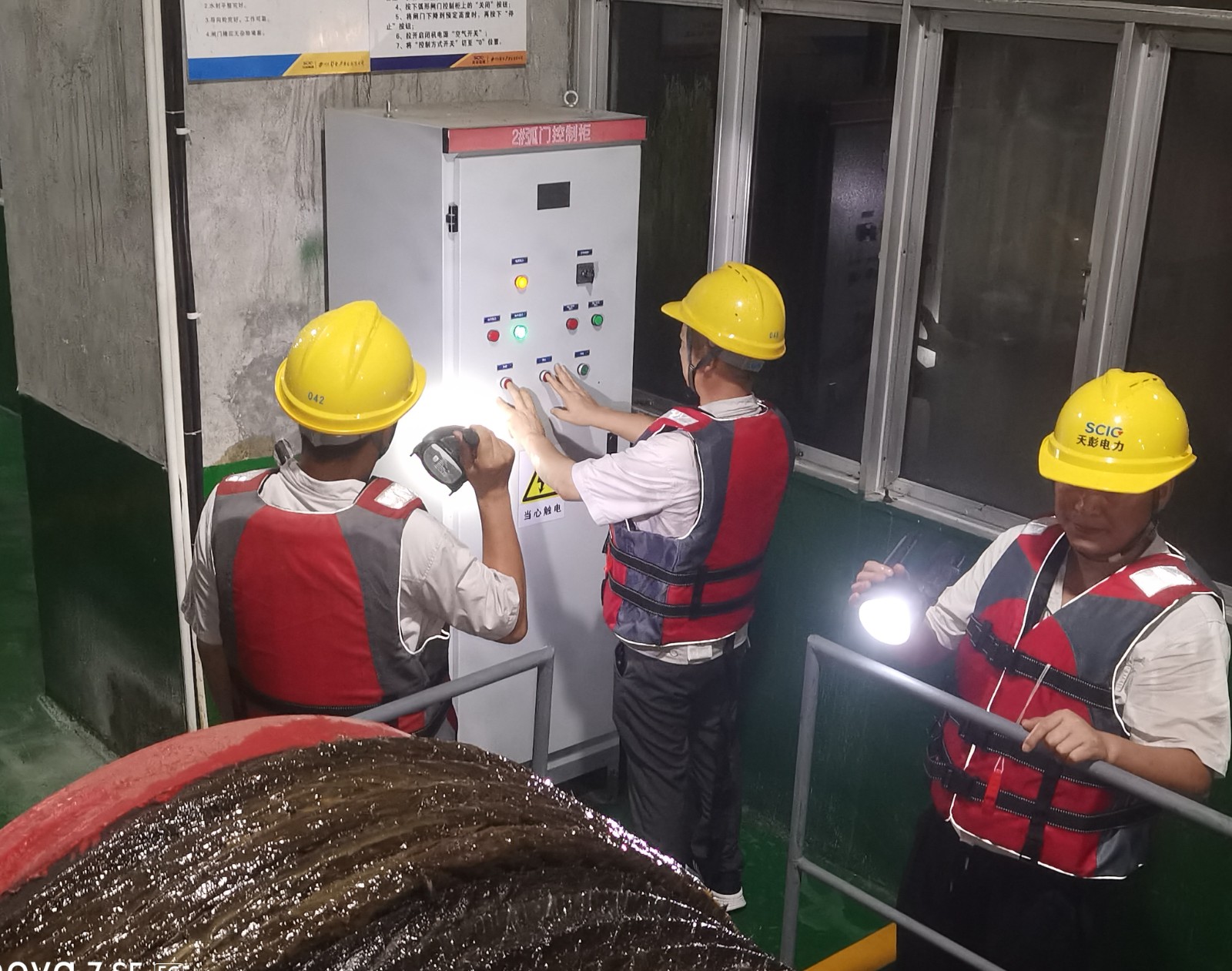 汛情就是命令,防汛就是責任,對于天彭電力人來說,這注定是個不眠之夜。公司領導現(xiàn)場指揮,及時處置各類突發(fā)情況,值班人員兵分三路、各司其職,一路駐守控制室,密切關注雨情、水情變化,做好信息收集和傳達;一路前往防汛重點部位進行巡視檢查,確保設備設施運行正常;一路做好應急搶險準備。