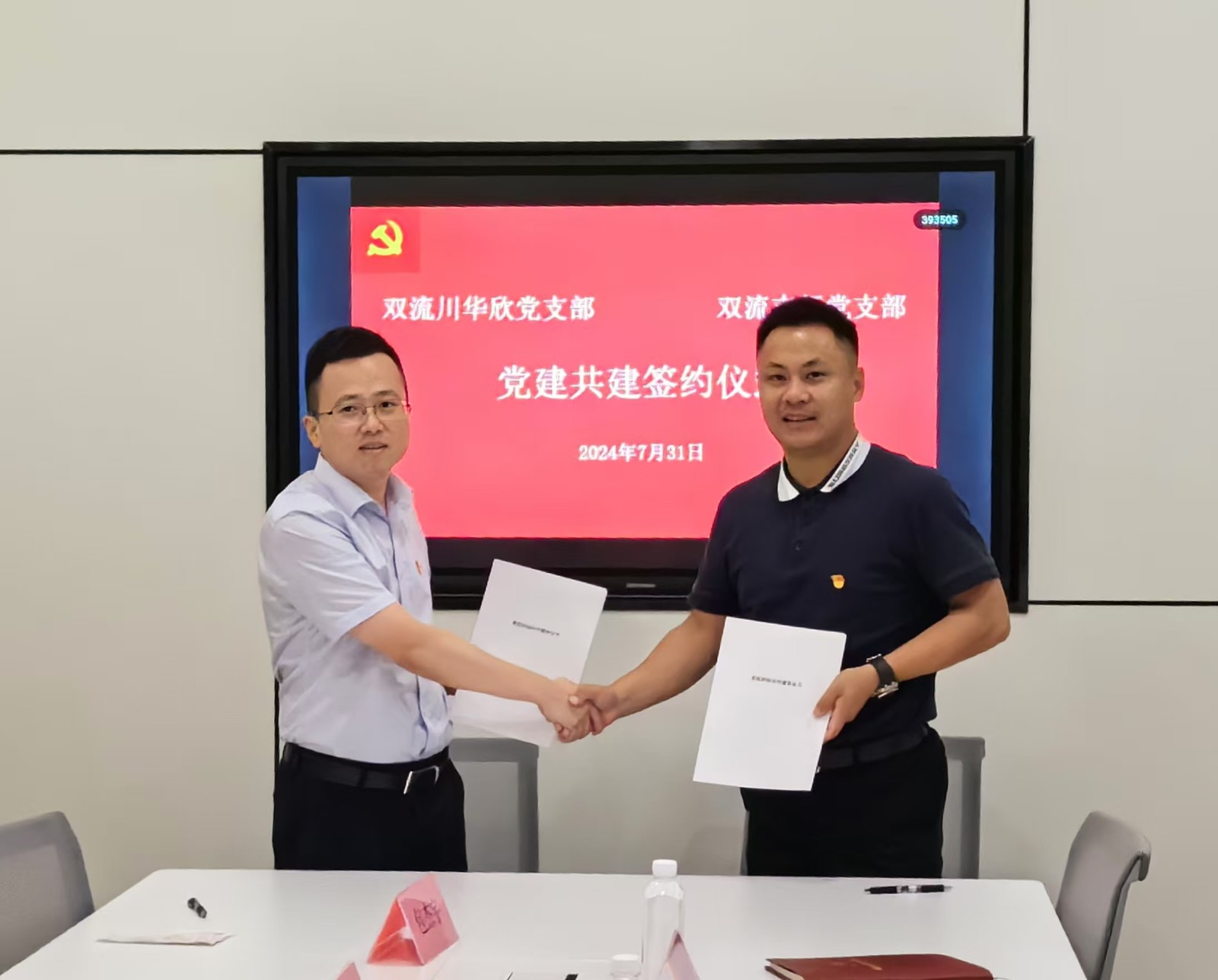 雙流川華欣黨支部副書記周揚(yáng)鑫、四川銀行雙流支行黨支部書記凌胤欽出席簽約儀式并代表雙方簽署“黨建結(jié)對(duì)共建活動(dòng)”協(xié)議書。