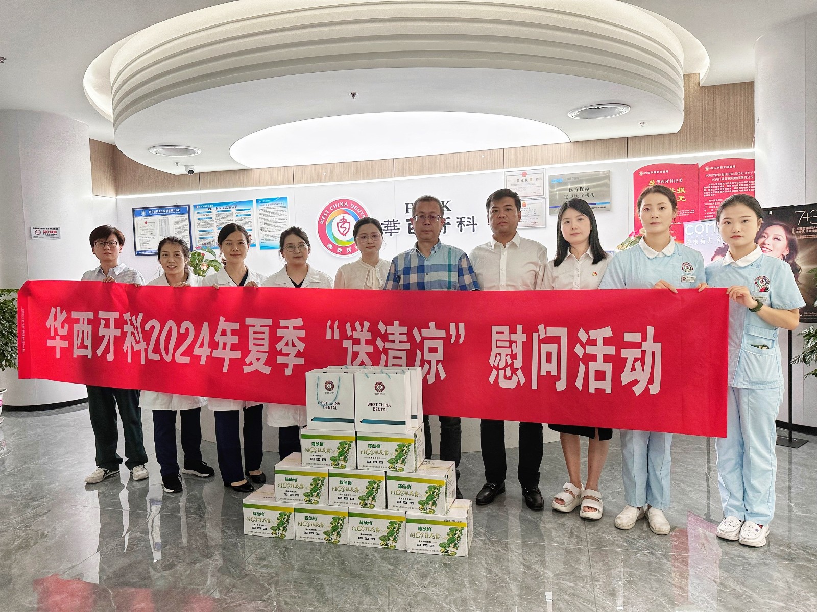 8月9日上午,華西牙科黨委書記、董事長、總經(jīng)理劉凌云帶隊赴內(nèi)江華西牙科醫(yī)院開展“送清涼”慰問活動,為一線工作人員送去清涼飲料、防暑藥品等慰問品。