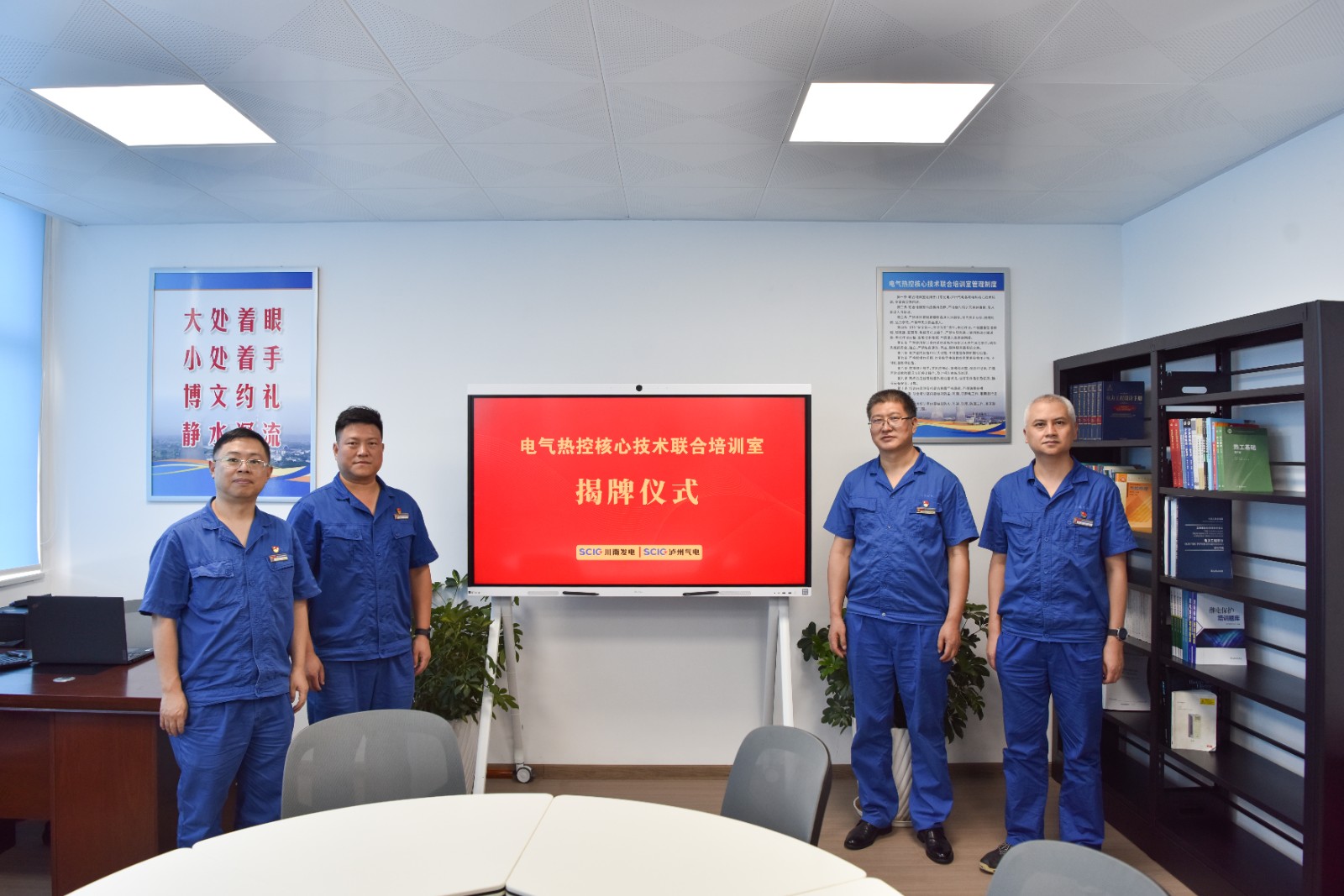 為提高公司員工對電氣、熱控核心技術(shù)的掌握水平,同時滿足瀘州氣電技能培訓(xùn)需要,川南發(fā)電與瀘州氣電攜手共同組建的電氣熱控核心技術(shù)聯(lián)合培訓(xùn)室于8月9日揭牌并投入使用。