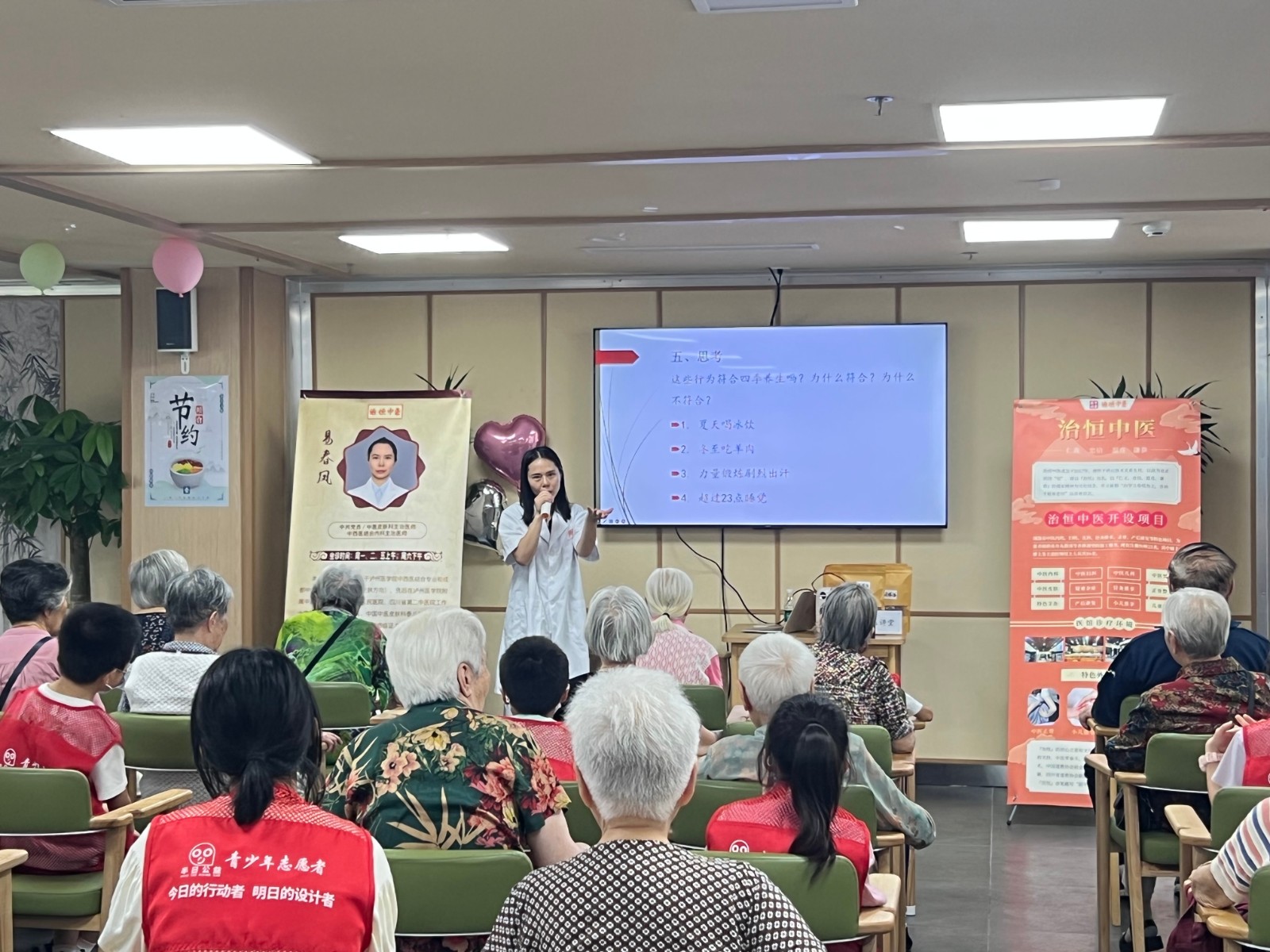 武侯青年志愿者們與治恒中醫(yī)館的中醫(yī)老師以“三伏天健康知識小講堂”的特色形式,為院內(nèi)在住長者講授了夏日防暑降溫常識及注意事項。針對長者夏季易發(fā)、常見疾病,中醫(yī)老師們也進行了針對性防護防范措施講解及演示,讓廣大長者了解掌握了炎夏如何進行“科學避暑、有效降溫”。