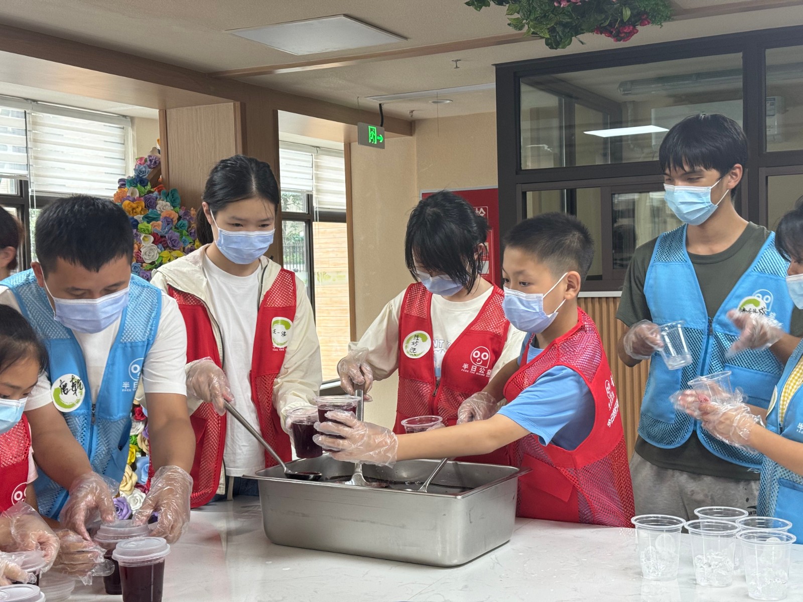 中醫(yī)老師們向長者們展示了夏季防暑降溫的常用中藥材,講解了使用方式、風險事項、藥品制作流程等內(nèi)容。長者們也紛紛動手,體驗了對藥材進行研磨、稱重、烹煮的過程。志愿者們還與中醫(yī)老師一道,現(xiàn)場制作夏季降溫神器——酸梅湯。通過對原材料的認真篩選,對烹飪過程中的嚴格把控,一杯杯健康、綠色、安全的酸梅湯順利出爐,為大家?guī)チ艘唤z清涼和一份關(guān)心。
