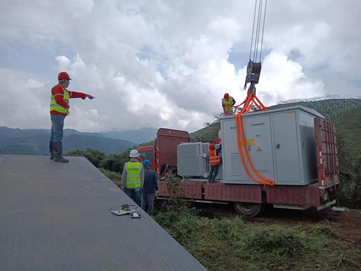 本次設(shè)備吊裝是德昌項目部組織的首次大型設(shè)備吊裝,為確保設(shè)備吊裝順利進行,項目部針對作業(yè)安全、道路運輸?shù)葐栴},提前開展安全培訓(xùn)及路況分析,確保吊裝任務(wù)順利完成。此次吊裝為后續(xù)15臺箱式變壓器吊裝提供了技術(shù)參考和工作經(jīng)驗,為電氣設(shè)備安裝調(diào)試及并網(wǎng)工作提供技術(shù)保障。