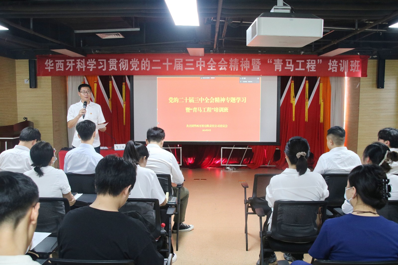 為深入學(xué)習(xí)貫徹習(xí)近平新時代中國特色社會主義思想和黨的二十屆三中全會精神,認真貫徹落實習(xí)近平總書記關(guān)于青年工作的重要思想,進一步深化青年思想政治引領(lǐng)。9月13日,華西牙科團委組織開展黨的二十屆三中全會精神專題學(xué)習(xí)暨“青馬工程”培訓(xùn)班?!扒囫R工程”學(xué)員及華西牙科團委委員、各團組織團員青年代表共53人通過線上線下結(jié)合的方式參加此次培訓(xùn)。
