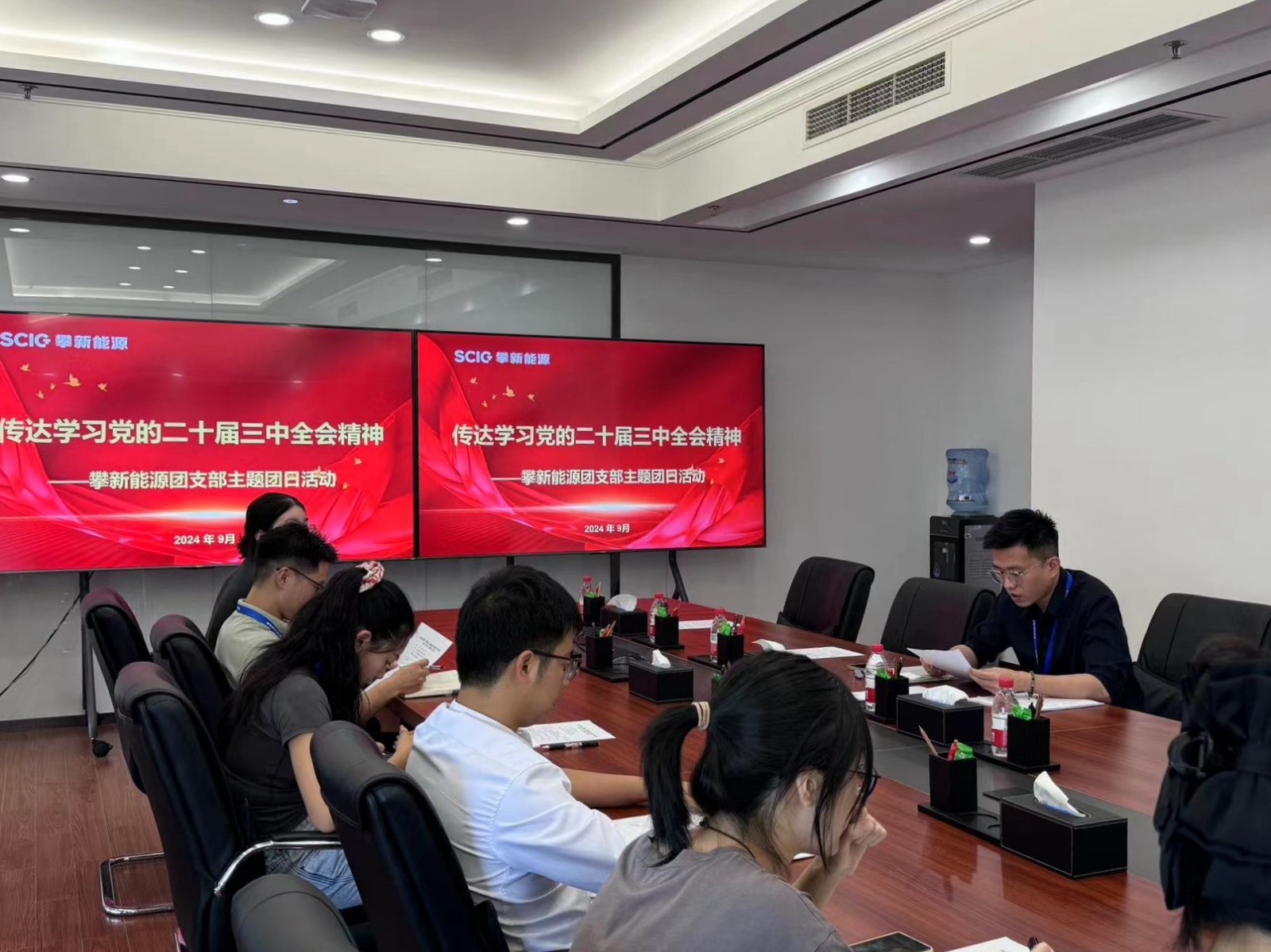 近日,川投能源所屬攀新能源公司團(tuán)支部舉行2024年9月主題團(tuán)日活動,專題傳達(dá)學(xué)習(xí)《中國共產(chǎn)黨第二十屆中央委員會第三次全體會議公報》,學(xué)習(xí)貫徹黨的二十屆三中全會精神。攀新能源團(tuán)支部書記、經(jīng)營管理部經(jīng)理潘鑫主持并領(lǐng)學(xué),公司全體團(tuán)員及屏山抽蓄公司全體團(tuán)員參會。