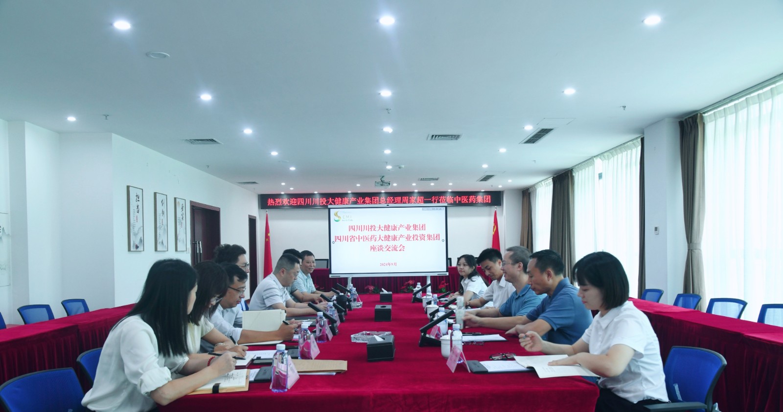 9月18日,川投大健康黨委副書記、總經(jīng)理周家超帶隊(duì)赴省中醫(yī)藥集團(tuán)座談交流,副總經(jīng)理、財(cái)務(wù)總監(jiān)姜濤參加會(huì)議。