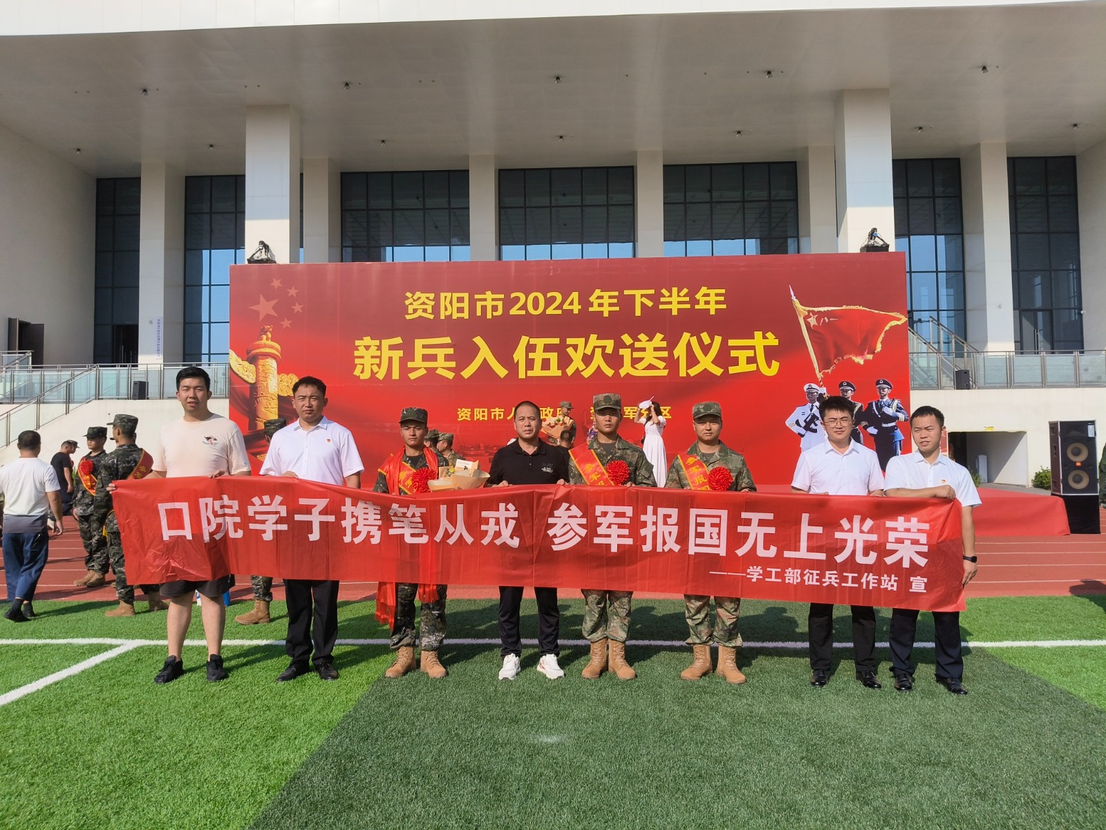 近日,2024年秋季新兵應(yīng)征入伍歡送儀式在資陽(yáng)市國(guó)防教育基地舉行。資陽(yáng)口腔職業(yè)學(xué)院學(xué)工部征兵工作站老師羅昭懋、彭洋鵬帶隊(duì)為即將出征的青年學(xué)子們送去關(guān)懷與祝福。