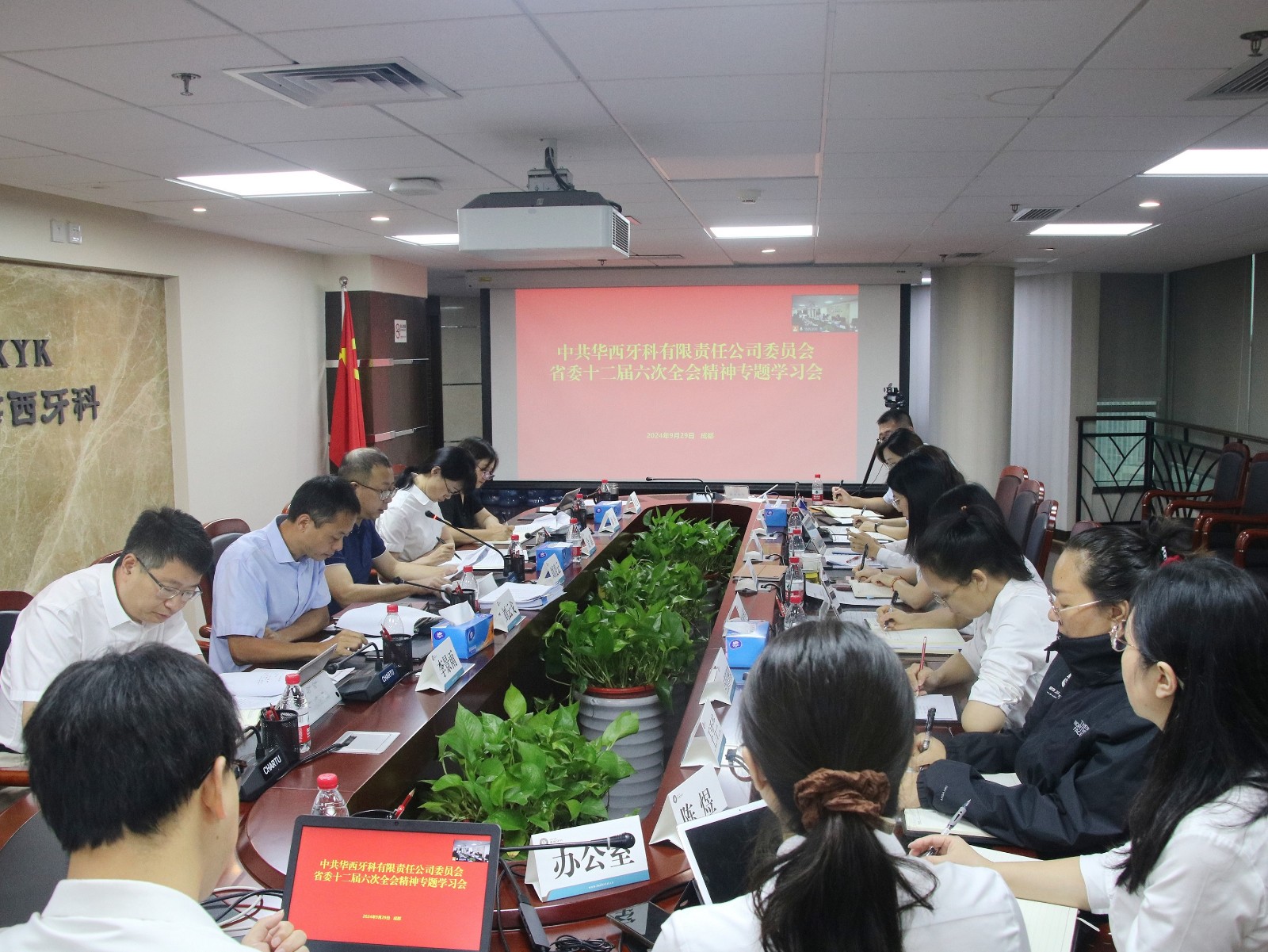 9月29日上午,華西牙科黨委召開會議,專題傳達學習省委十二屆六次全會精神,研究具體貫徹落實舉措。華西牙科黨委書記、董事長、總經(jīng)理劉凌云主持會議并講話。