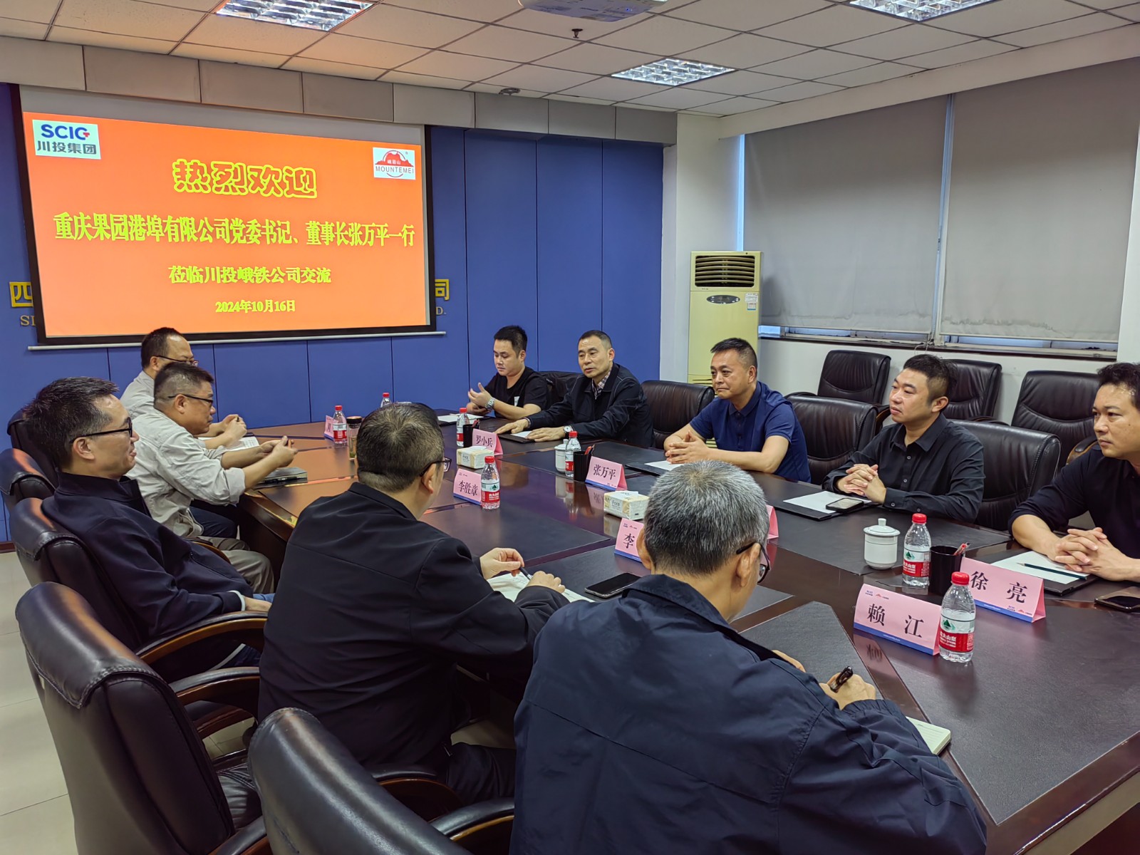 10月16日,重慶果園港埠有限公司黨委書記、董事長張萬平一行5人到訪公司。川投峨鐵公司黨委書記、董事長李勝章,黨委副書記、總經(jīng)理陳新龍,黨委委員、常務副總經(jīng)理李宏,營銷總監(jiān)周全與來訪客人進行了交流座談。