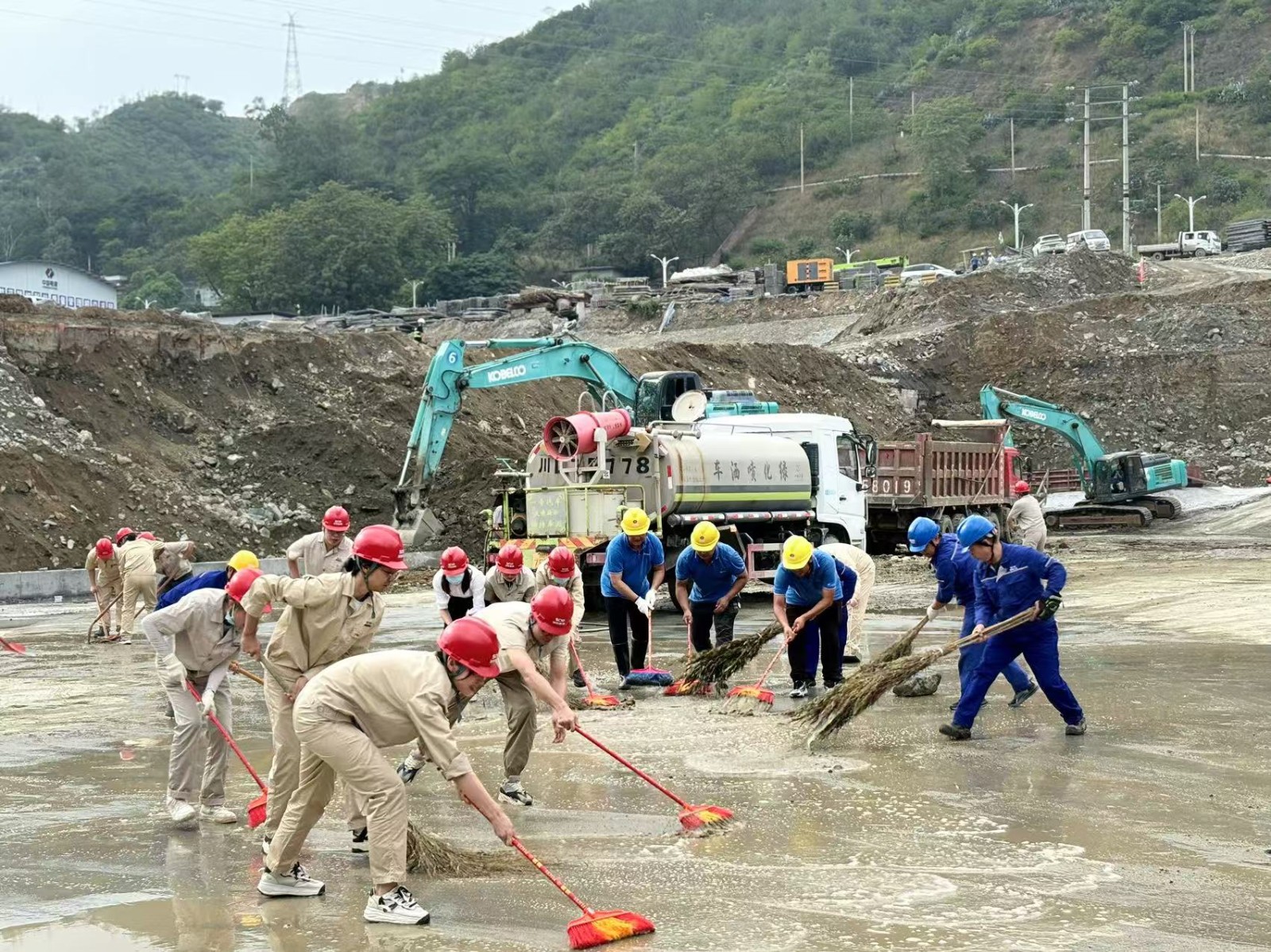 在銀江水電站進(jìn)出水口充水前夕,為創(chuàng)建良好的施工環(huán)境,避免工程垃圾污染江水,10月24日上午,川投能源所屬攀水電公司組織開展了新一輪安全文明施工提升工作,公司領(lǐng)導(dǎo)、各支部黨員、入黨積極分子、志愿者、各參建單位代表共計(jì)60余人到銀江水電站工地現(xiàn)場開展了工地安全文明提升行動(dòng)。