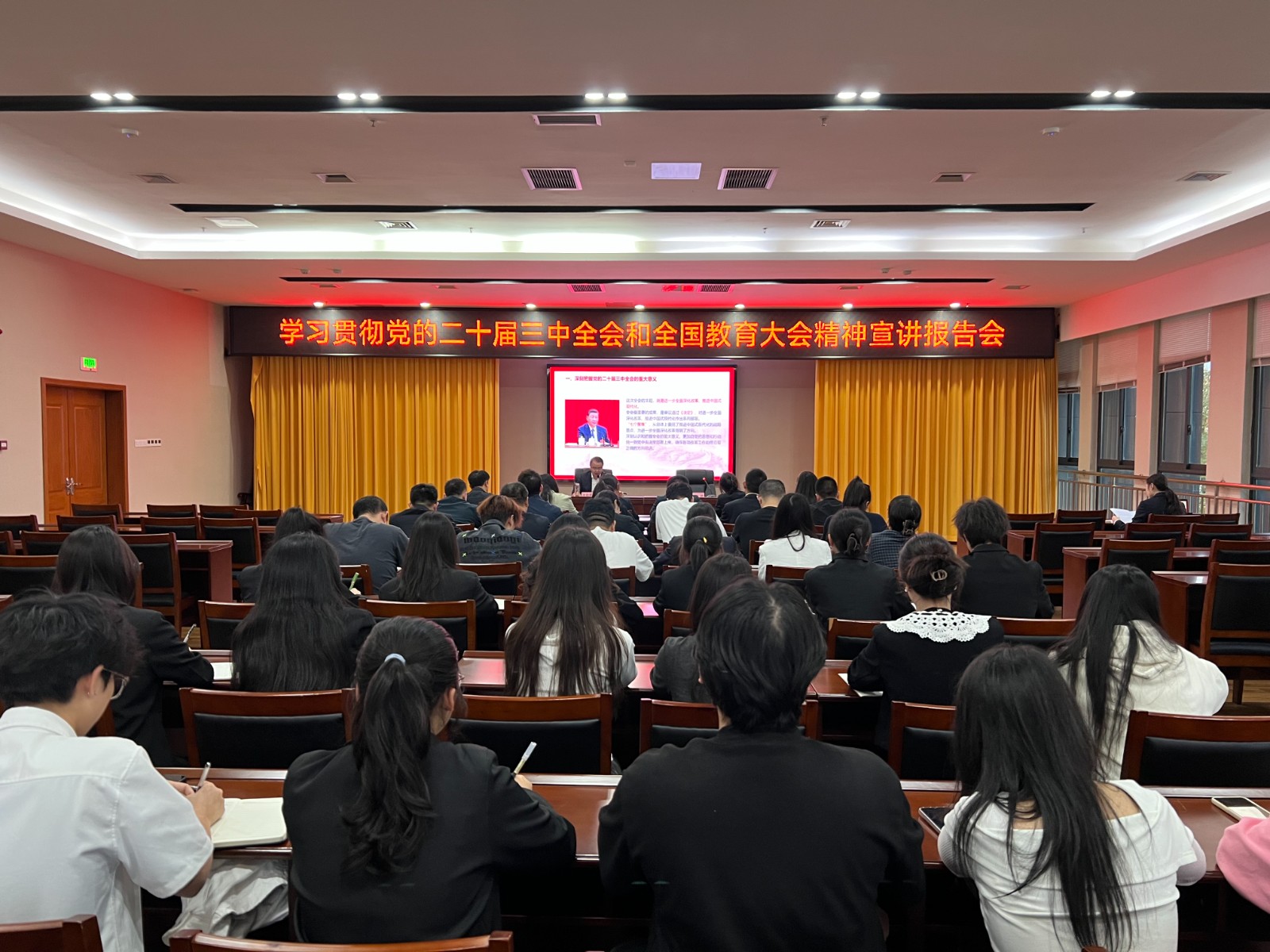 為深入學(xué)習(xí)宣傳貫徹黨的二十屆三中全會精神和全國教育大會精神,全面落實立德樹人根本任務(wù)。近日,學(xué)院黨委副書記、紀(jì)委書記、工會主席唐能熙開展黨的二十屆三中全會和全國教育大會精神宣講。