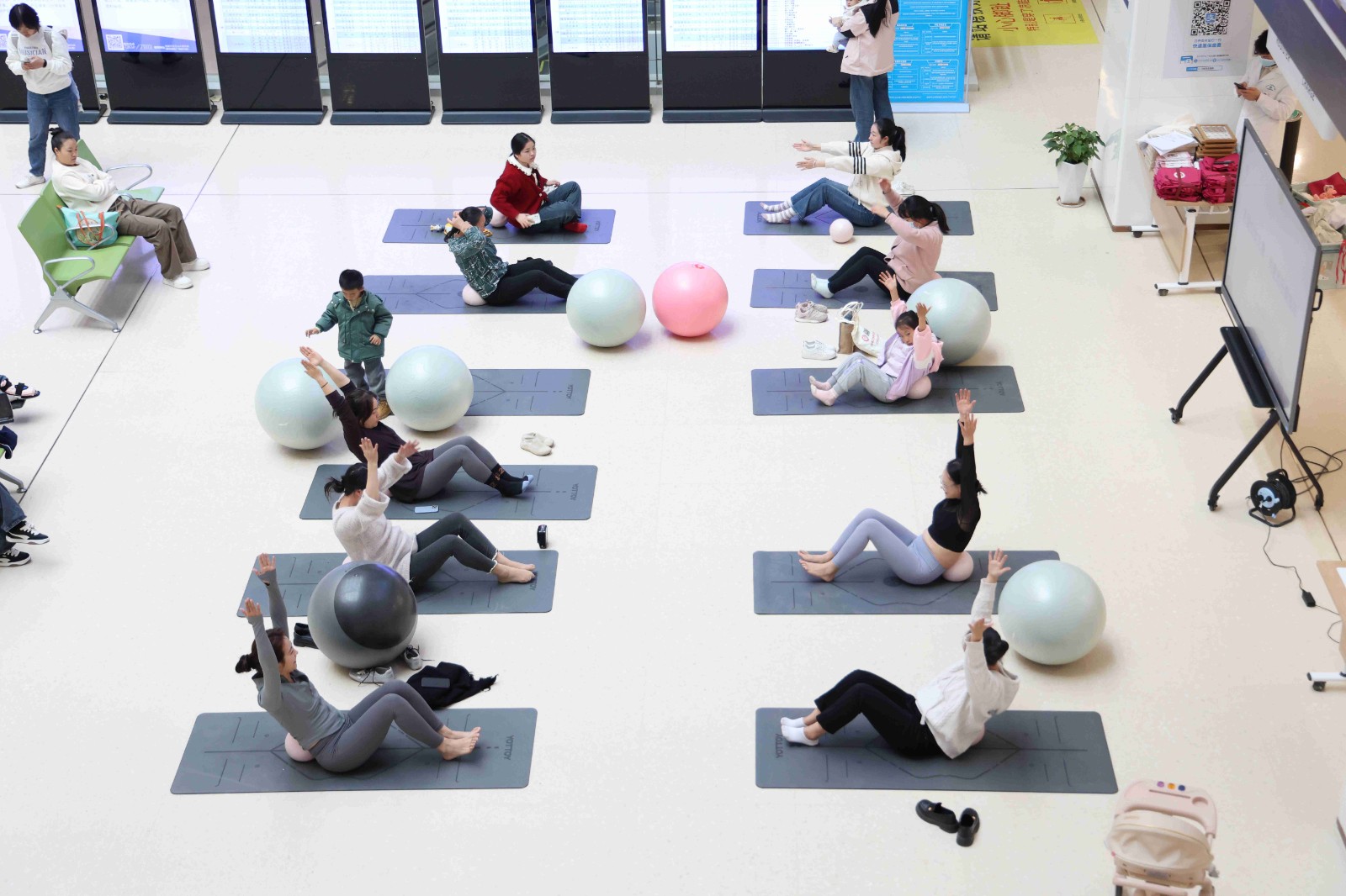 活動(dòng)最后,婦產(chǎn)科護(hù)士彭瑤帶領(lǐng)到院就診的孕產(chǎn)婦、婦女兒童患者進(jìn)行了現(xiàn)場(chǎng)瑜伽體驗(yàn),伴隨著悠揚(yáng)舒緩的音樂,大家全身放松,輕緩地伸展身體、緩慢呼吸。期間,彭瑤老師一對(duì)一指導(dǎo)每一位女性朋友調(diào)節(jié)呼吸、用力等,協(xié)助完成最佳瑜伽體式,以達(dá)到最佳運(yùn)動(dòng)效果。