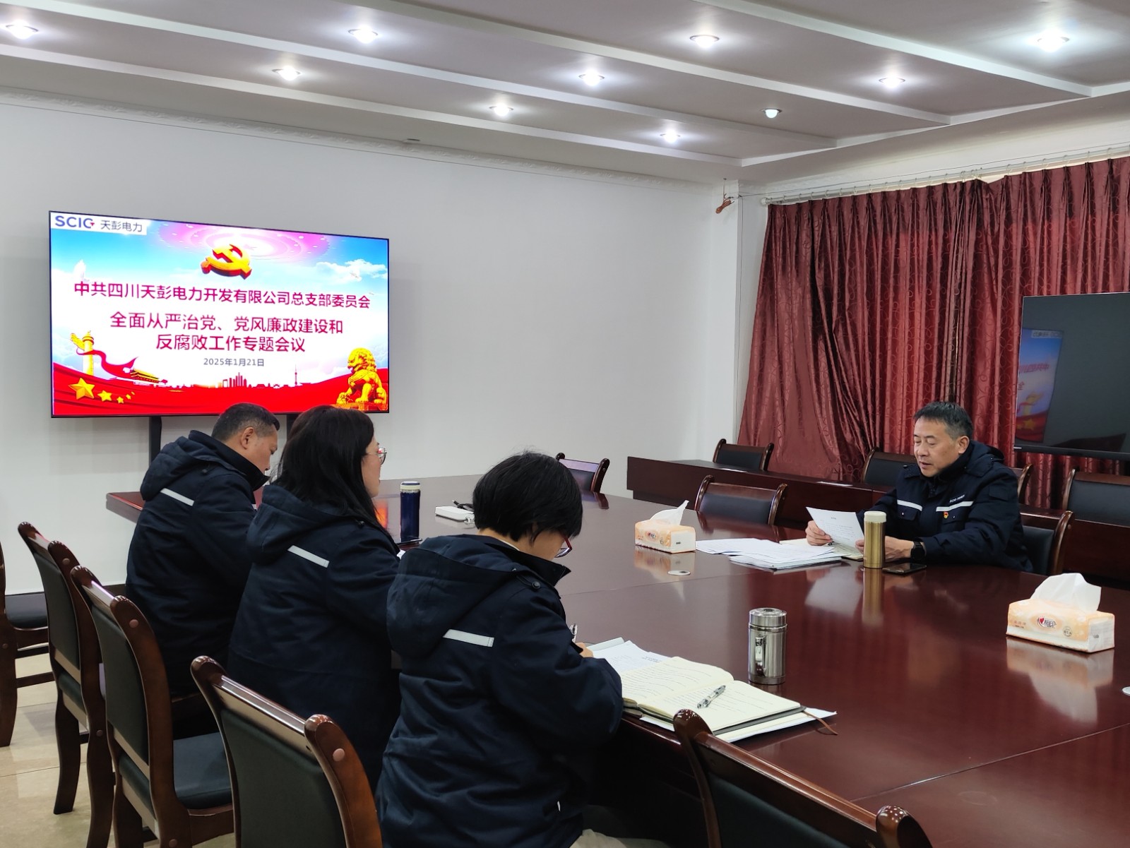 為深入貫徹全面從嚴(yán)治黨要求,持續(xù)強(qiáng)化黨風(fēng)廉政建設(shè),推動(dòng)反腐敗各項(xiàng)工作落實(shí)落地,近日,川投能源所屬天彭電力黨總支召開年度全面從嚴(yán)治黨、黨風(fēng)廉政建設(shè)和反腐敗工作專題會(huì),公司領(lǐng)導(dǎo)班子成員參會(huì),會(huì)議由天彭電力公司黨總支書記、執(zhí)行董事、總經(jīng)理劉紅兵主持。